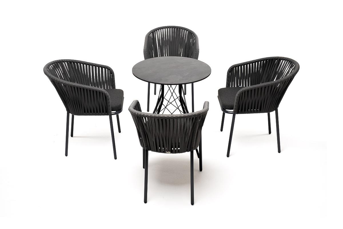 Обеденная группа 4SIS "Конте" обеденная группа на 4 персоны, круглый стол, цвет "серый гранит" арт. R70-SHT-TU2-1/4хAS1158 B-Rope-2