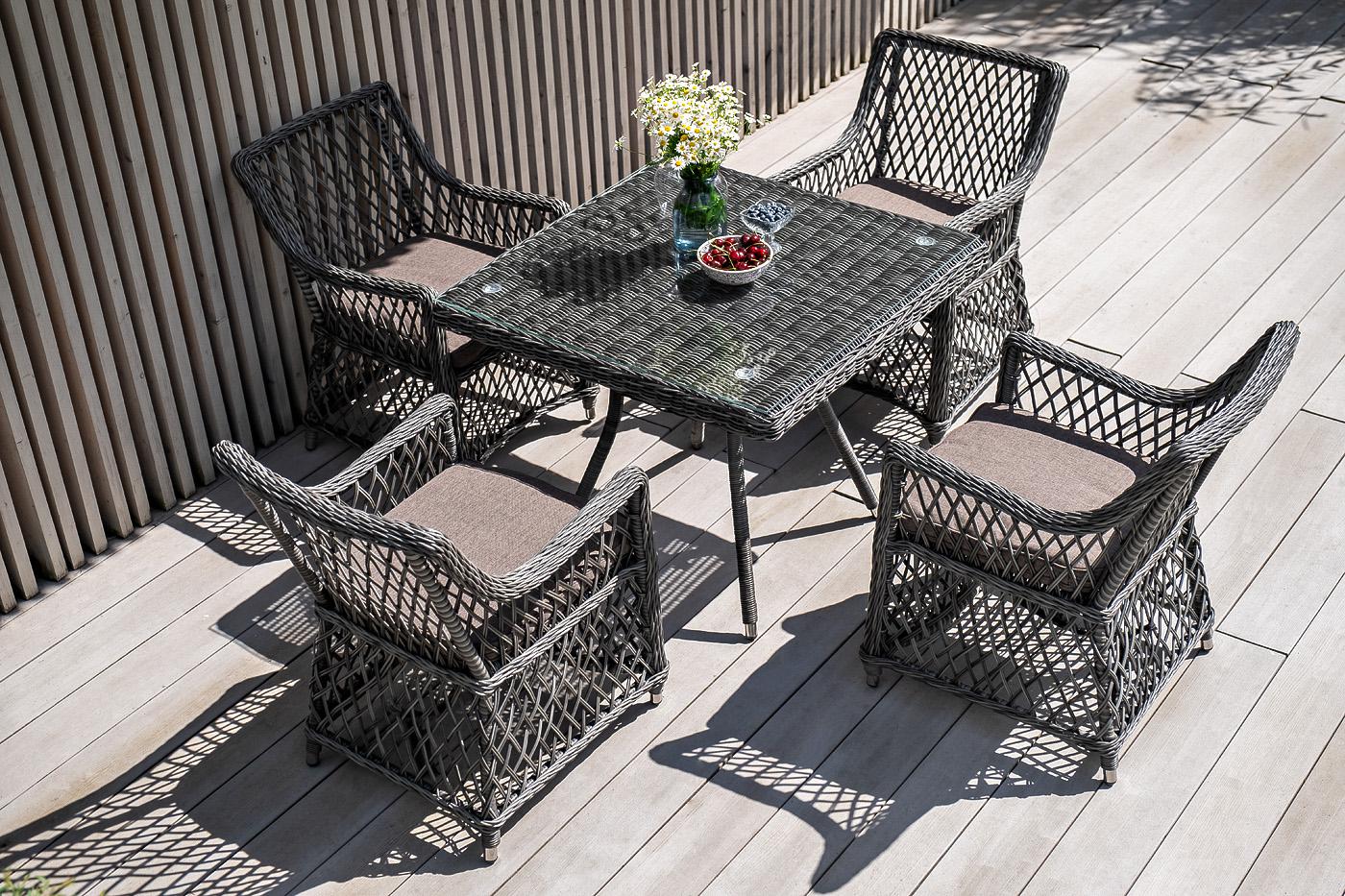 Обеденная группа 4SIS "Айриш" обеденная группа плетеная на 4 персоны, цвет графит арт. AC4T-5-SET graphite