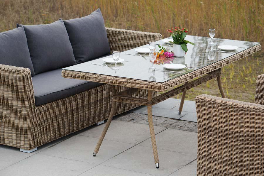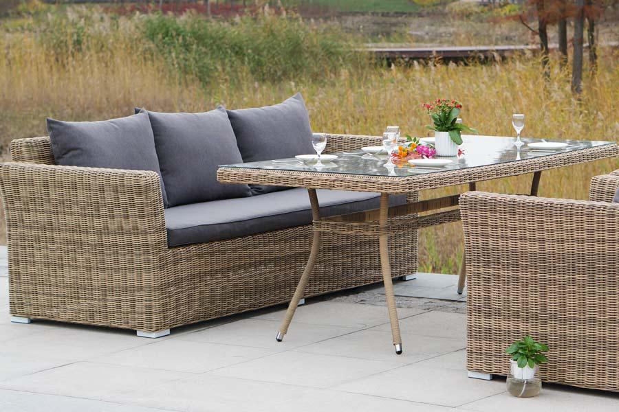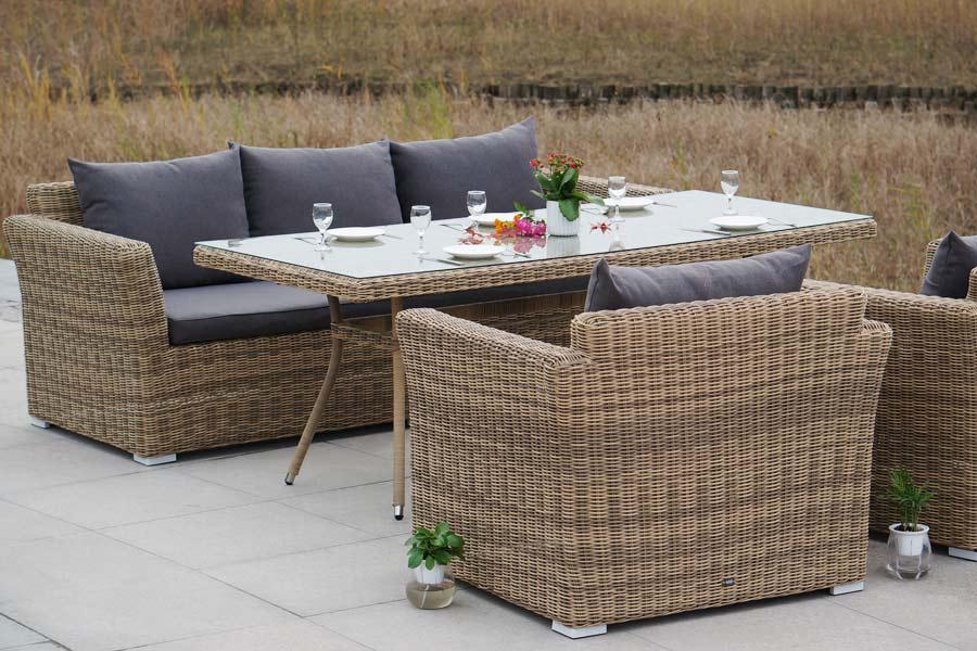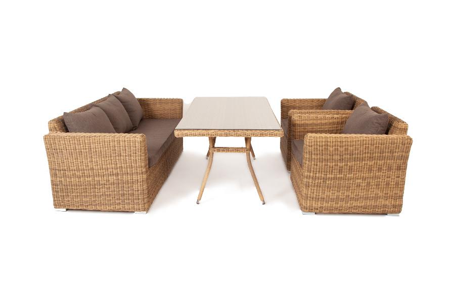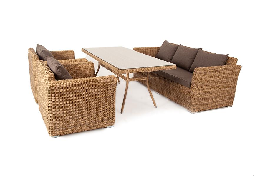 Обеденная группа «Моккачино» позволит оформить обеденную зону даже на открытом пространстве загородного участка. В составе комплекта: - два кресла – 1040×865×815 мм. - один диван – 2200×865×815 мм. - стол «Латте» со стеклянной столешницей – 2000×900×750 мм. Мебельный каркас изготовлен из высококачественного алюминия. Соломенный искусственный ротанг применяется при создании ручной оплетки. На диванах и креслах расположены подушки в съемных чехлах, цвет - серый. Они пошиты из полиэстер "Капучино" диван из искусственного ротанга трехместный, цвет соломенный 1шт. 2 220Х865Х815, "Капучино" кресло из искусственного ротанга, цвет соломенный 2шт. 1 040Х865Х815, "Латте" плетеный стол из искусственного ротанга 200х90см, цвет соломенный 1шт. 2 000Х900Х750,