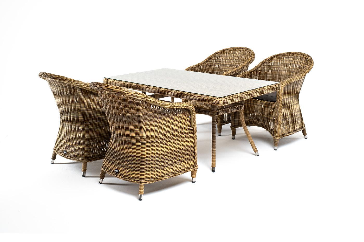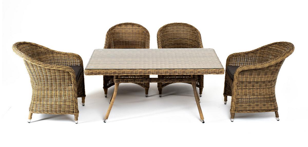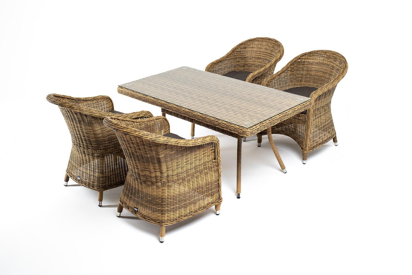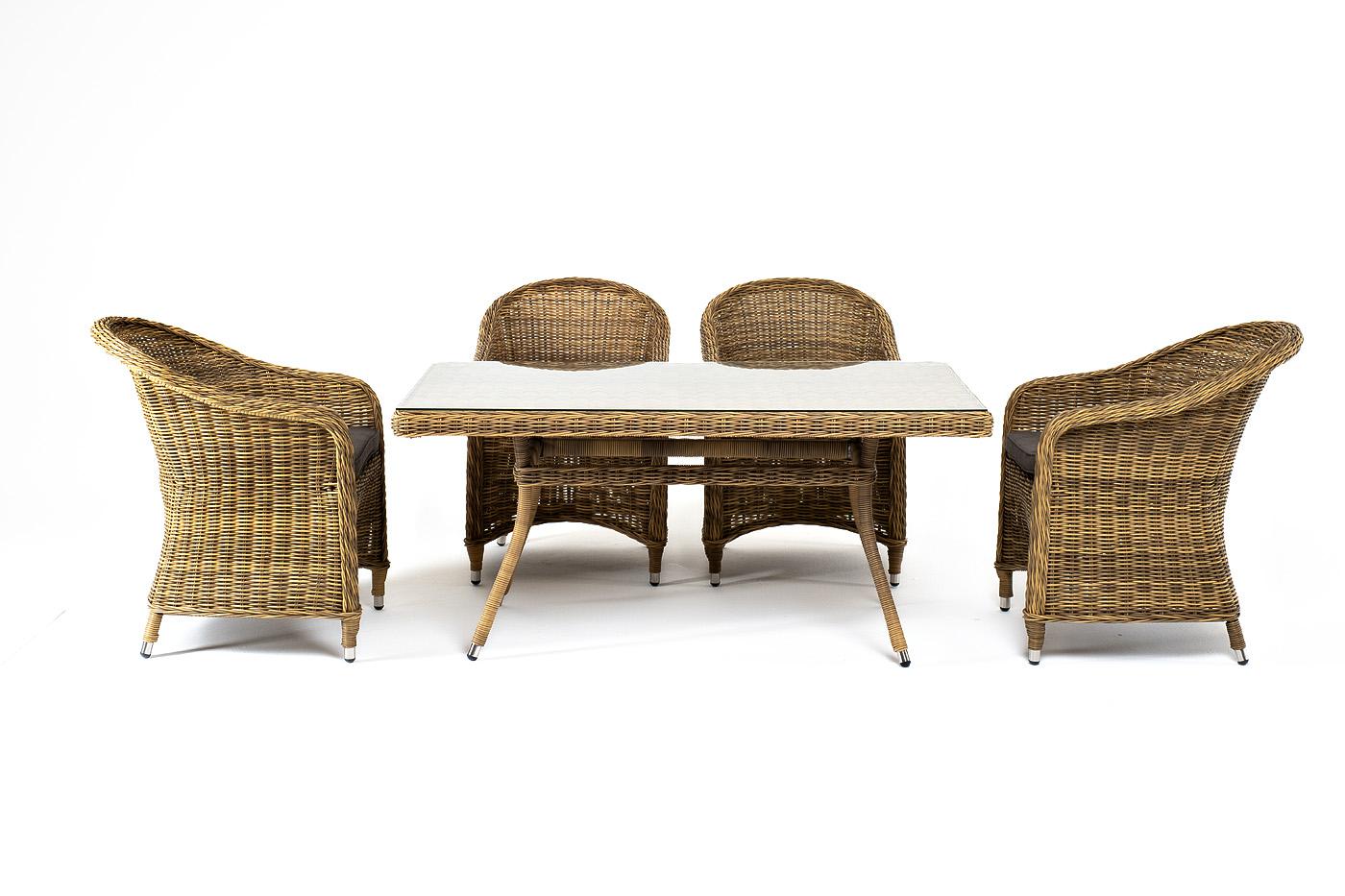 Обеденная группа 4SIS "Латте–140 R" обеденная группа плетеная, цвет соломенный арт. LCR4T-5-SET