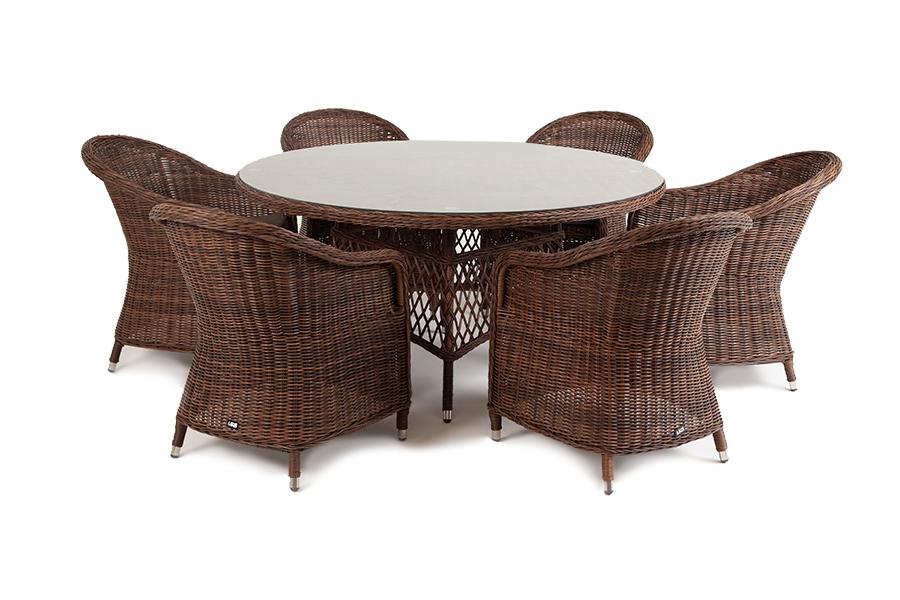 Обеденная группа 4SIS "Эспрессо–150 R" обеденная группа плетеная, цвет коричневый арт. ECR6T-7-SET brown