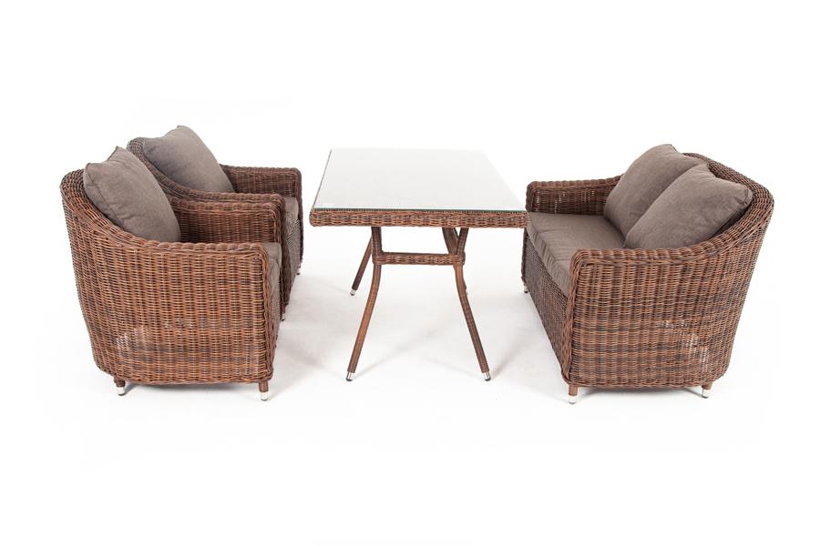 Обеденная группа «Кон Панна», рассчитана на 4 персоны. В ее состав входят: - два плетеных кресла – 800×800×800 мм. - двухместный диван – 1370×800×800 мм. - обеденный стол – 1400×800×750 мм. "Кон Панна" диван из искусственного ротанга двухместный, цвет коричневый 1шт. 1 370Х800Х800, "Латте" плетеный стол из искусственного ротанга 140х80см, цвет коричневый 1шт. 1 400Х800Х750, "Кон Панна" кресло из искусственного ротанга, цвет коричневый 2шт. 800Х800Х800,