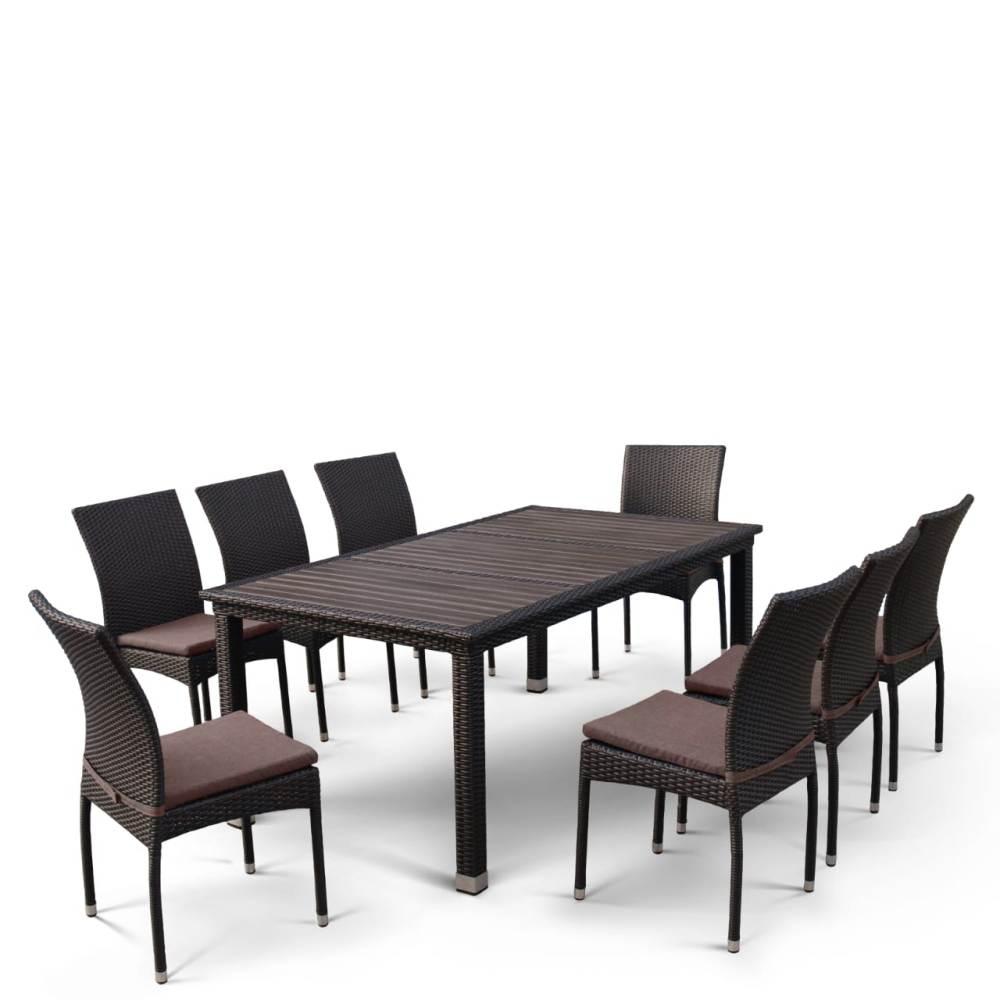Комплект плетеной мебели T347/Y380A-W53 Brown (8+1) от бренда Afina. В составе комплекта: стол - столешница декинг и 8 стульев с подушками. Высококачественная лоза из полиротанга коричневого цвета стойкая к любым атмосферным явлениям. Крепкий стальной каркас с полимерным антивандальным покрытием и отличным качеством сварки. Изделие сплетено вручную нашими мастерами под жестким контролем качества на каждом этапе производства. Лоза максимально приближена по рельефу и текстуре к естественному материалу. Идеально подходит для использования на улице и внутри помещения в любую погоду. Не боится воды, солнца и минусовой температуры.