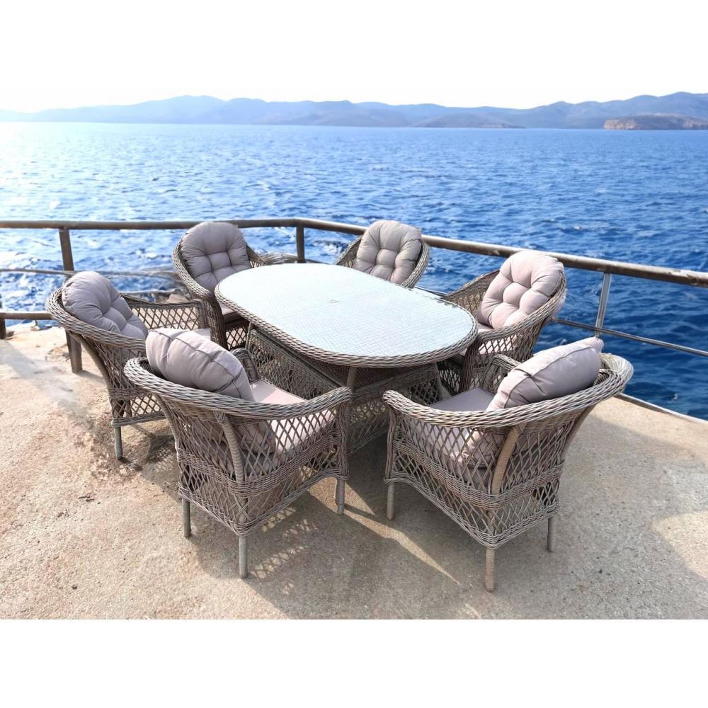 Комплект плетеной мебели T217/LV-217 Beige (6+1) от бренда Afina Garden из круглого ротанга. В комплекте овальный стол и 6 кресел с подушками.