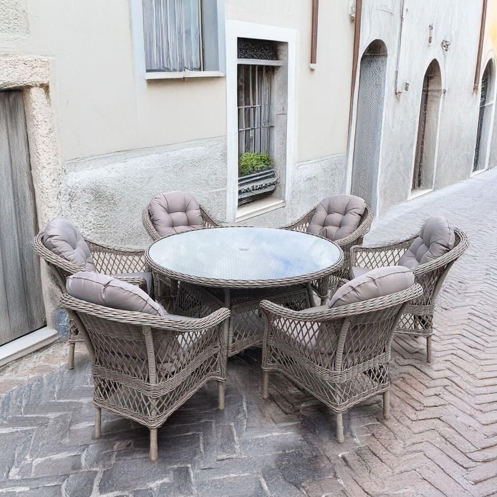 Обеденная группа Афина Комплект мебели T219/LV-217 Beige (6+1) с подушками в комплекте арт. T219/LV-217-6 Pcs Beige