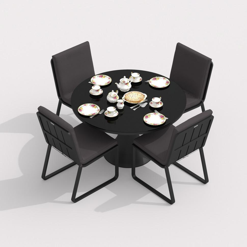 Обеденная группа IDEAL PATIO Обеденная группа DIVA GIRA каркас карбон / стол стекло диа 110 / ткань антрацит арт. DVA.2013511