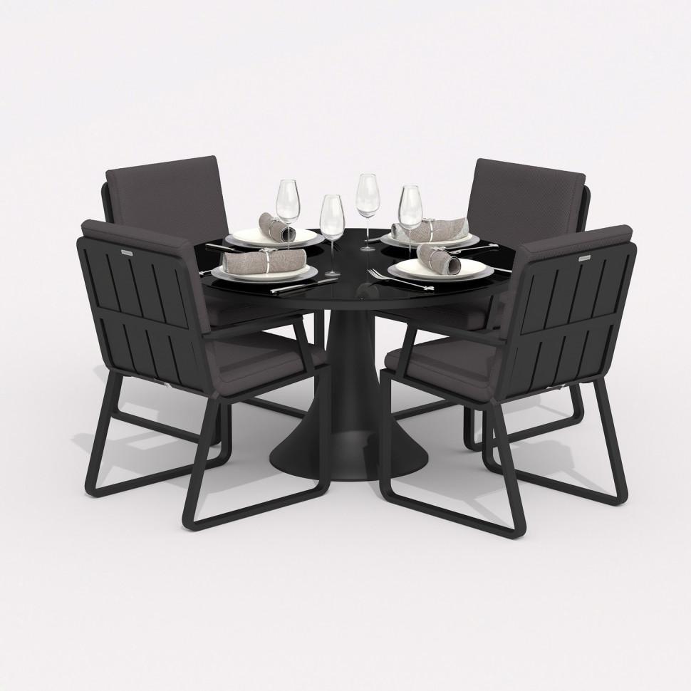Обеденная группа IDEAL PATIO Обеденная группа DIVA ALBA каркас карбон / стол стекло диа 110 / ткань антрацит арт. DVA.2012511
