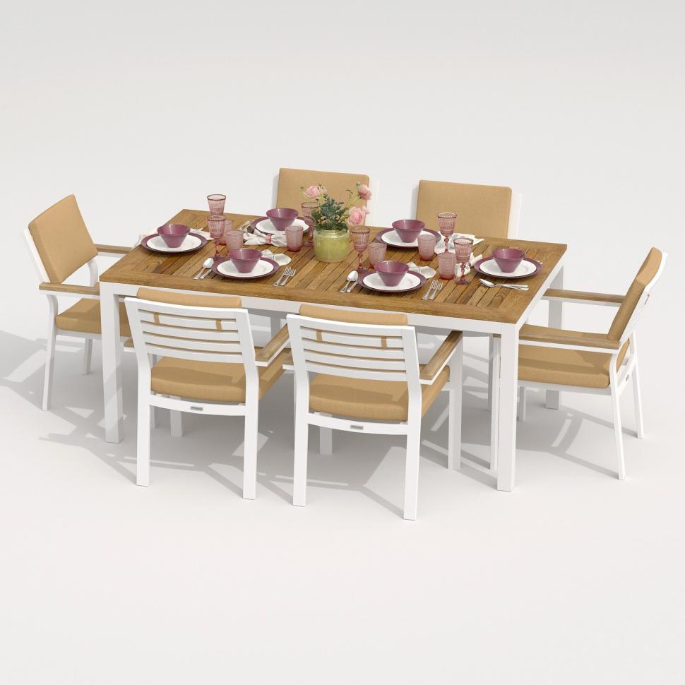 Обеденная группа IDEAL PATIO Обеденная группа ТЕЛЛА БОНТА каркас белый / стол тик 180 / ткань бежевая арт. TLL.2021218