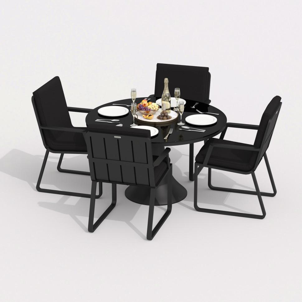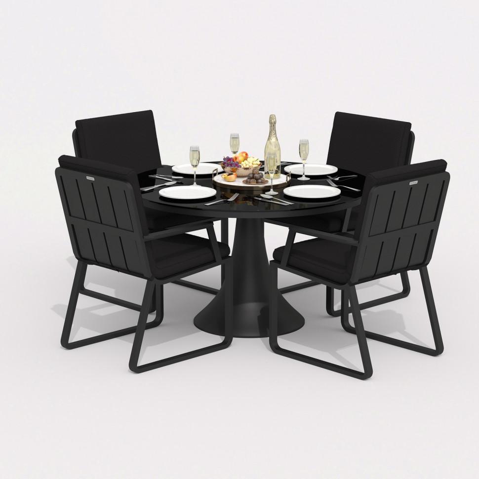Обеденная группа IDEAL PATIO Обеденная группа ДИВА АЛЬБА каркас карбон / стол стекло диа 110 / ткань черная арт. DVA.2012611