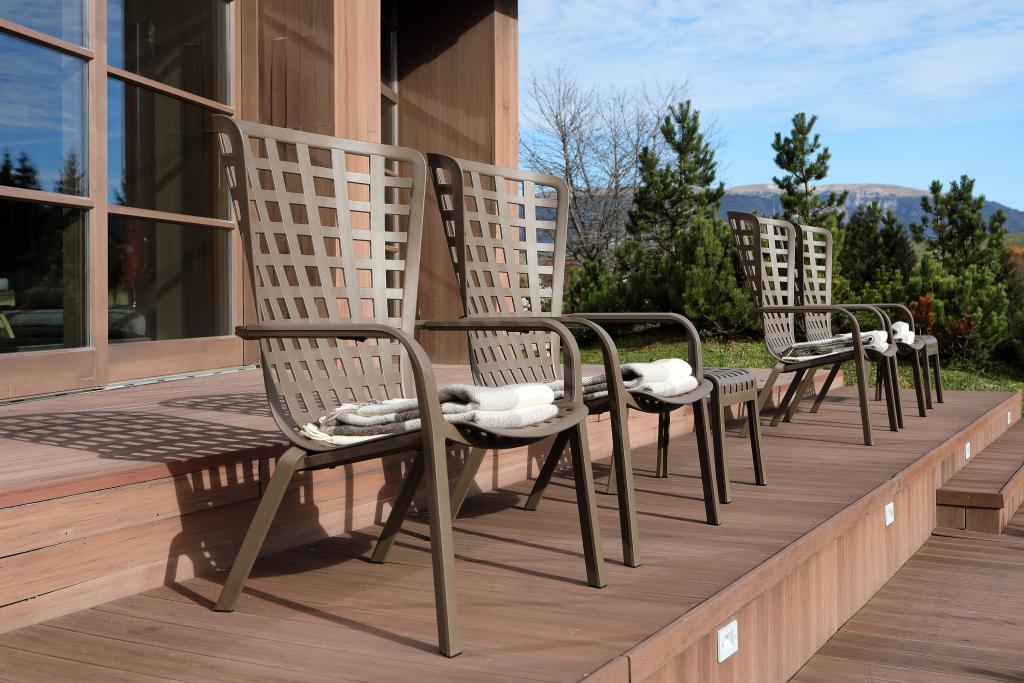 Очень низкий коэффициент теплопроводности материала позволяет продукции долго оставаться на солнце без поглощения тепла. Для того чтобы восстановить прежнее состояние мебели после использования на открытом воздухе, достаточно протереть ее губкой с водой и нейтральным средством, не используя абразивные чистящие средства, растворители и хлорсодержащие вещества. Материал пластиковой мебели Nardi экологически чистый.