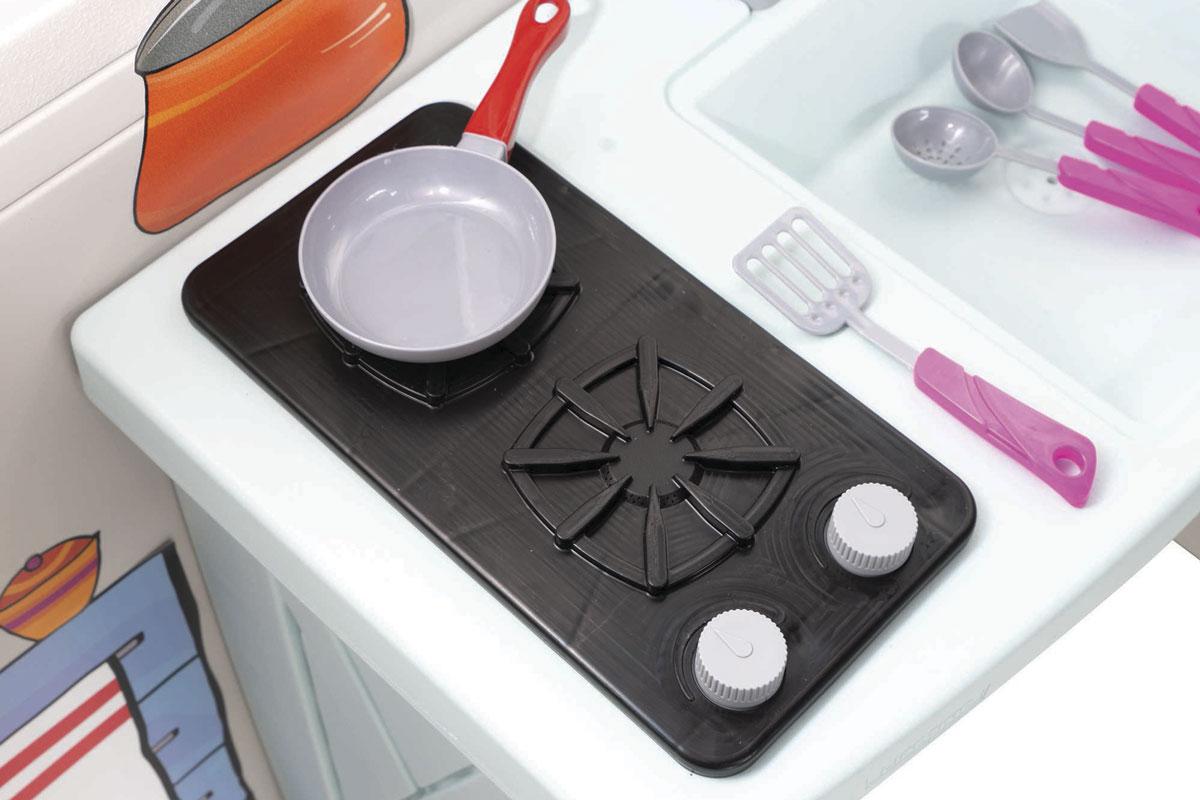 Раковина и плита, игрушечная еда, сковороды и посуда в комплекте