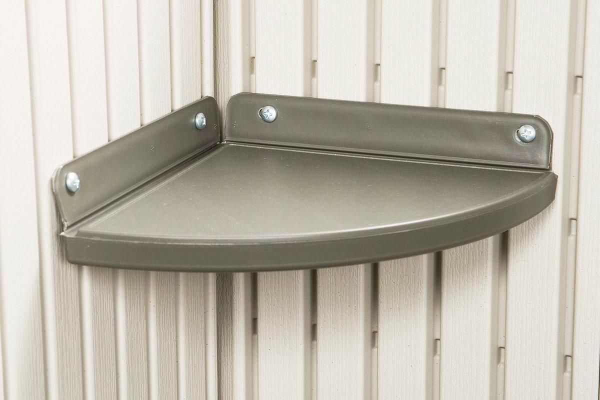 Удобство хранения - Дополнительное угловое местоПростой монтаж - Крепится непосредственно к стенам хозблока, крепежи в комплекте