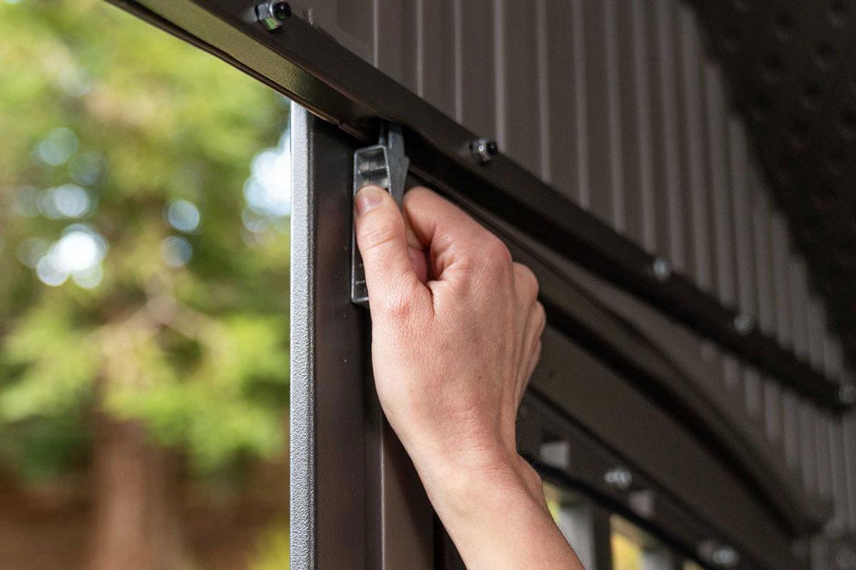 Модель большого дачного сарая-хозблока с двойным входом Woodlook 60318 (4,58 х 2,44 м) собирается в минимально короткие сроки своими силами.
