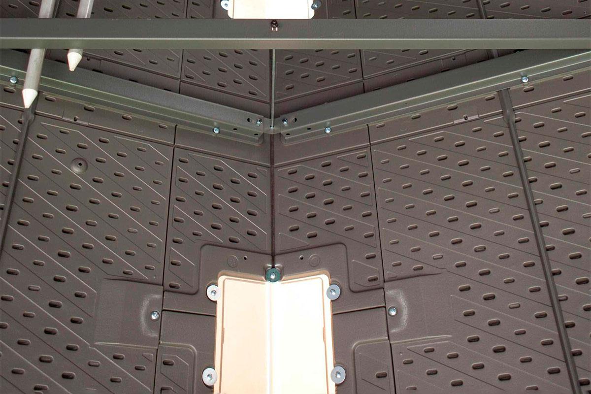 Прочность – Технология «BLOW MOLDED» - увеличивает прочность при том же количестве пластика в 2 раза, армированный каркас выдерживает высокие нагрузки, двускатная кровля с максимальной нагрузкой более 200кг/м2