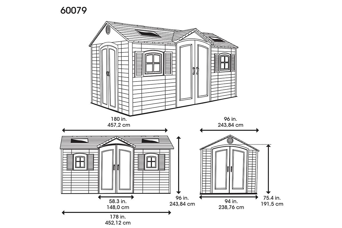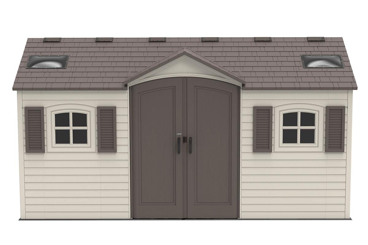 Модель большого дачного сарая-хозблока с двойным входом Lifetime 60079 собирается в минимально короткие сроки своими силами.