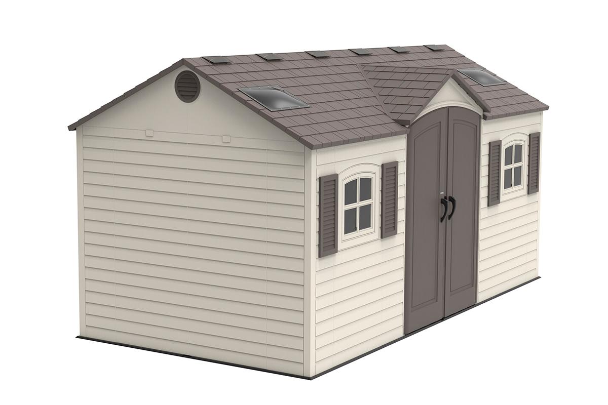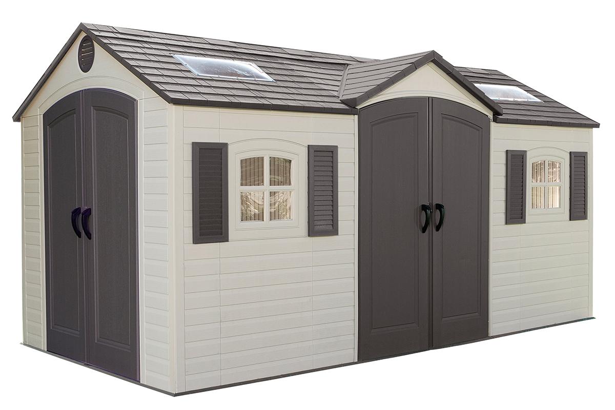 Пластиковый сарай LifeTime 15`x 8`самый большой из представленных, отличается вместимостью и двойным входом, что обеспечит легкую доступность к хранимым вещам, позволит зонировать пространство сарая под ваши нужды и подарит вам безграничные возможности хранения, поместиться всё: