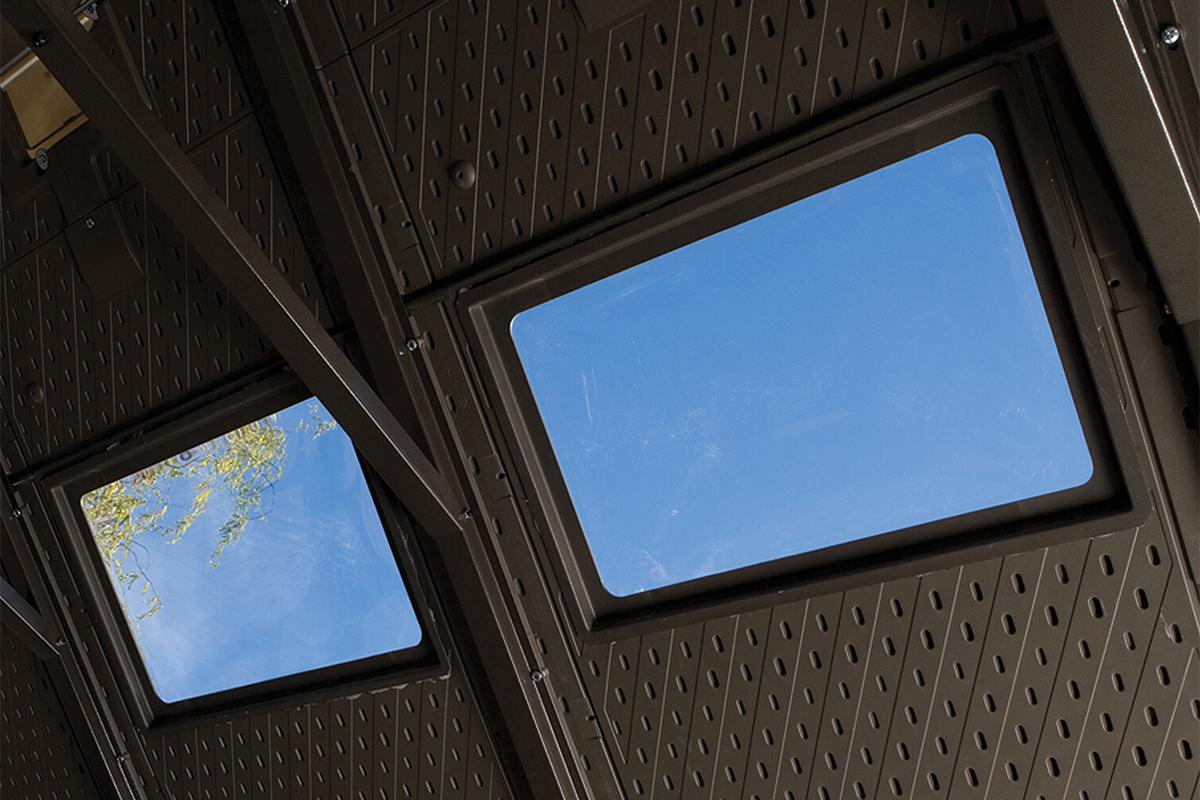 Освещенность – 2 окна в фасаде сарая, 6 малых световых люков в крыше освещают весь инвентарь