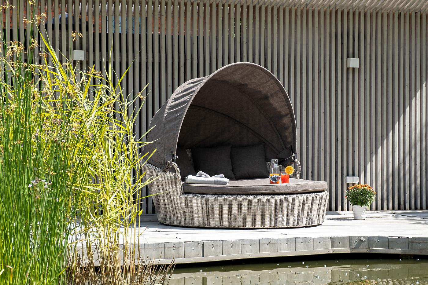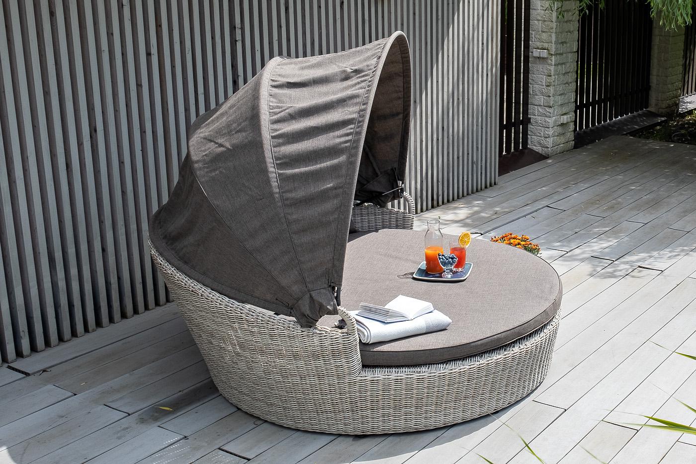 Шезлонг 4SIS "Стильяно" плетеная кровать круглая, цвет бежевый арт. YH-L618W beige
