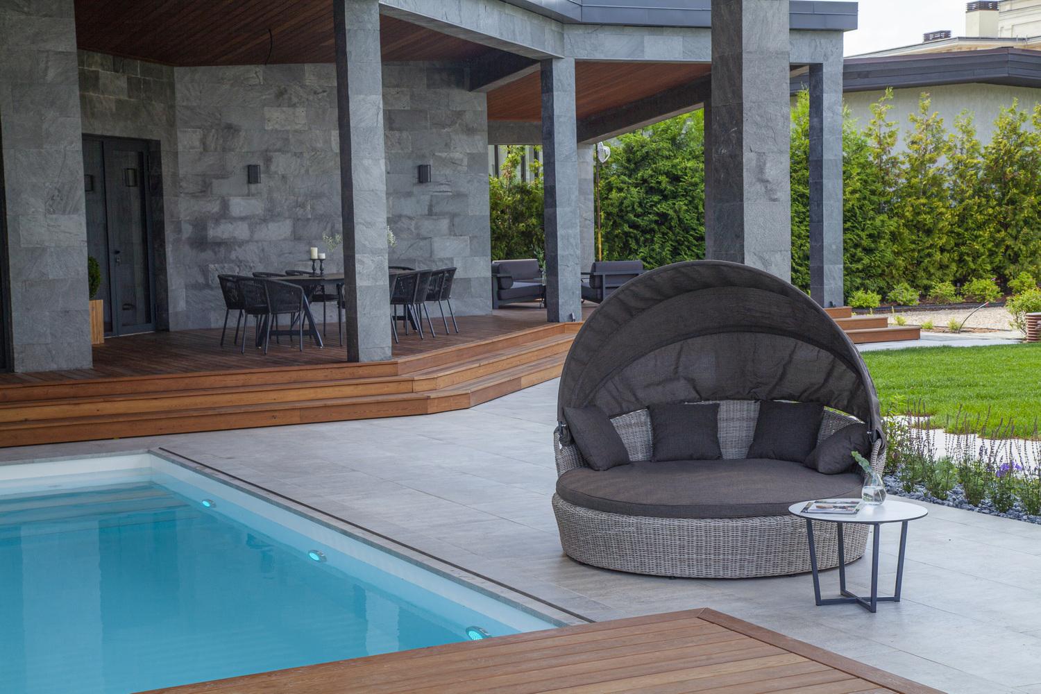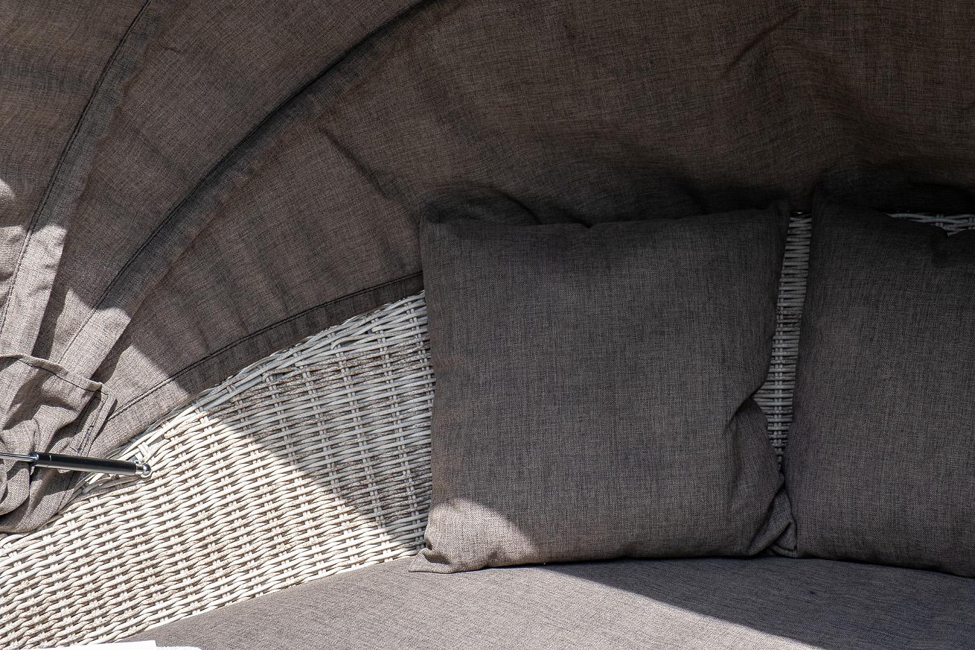 Круглая кровать из искусственного ротанга бежевого цвета «Стильяно» никого не оставит равнодушным благодаря своему неординарному дизайну. Данная модель имеет в основании прочный алюминиевый каркас, оплетенный вручную круглым ротангом бежевого цвета и оснащена регулируемым козырьком, который ограничивает попадание солнечных лучей. Выполнен из водостойкой полиэфирной ткани. Мягкий матрас имеет съёмный чехол серого цвета состоящий из высококачественного полиэстера с водоотталкивающей пропиткой,
