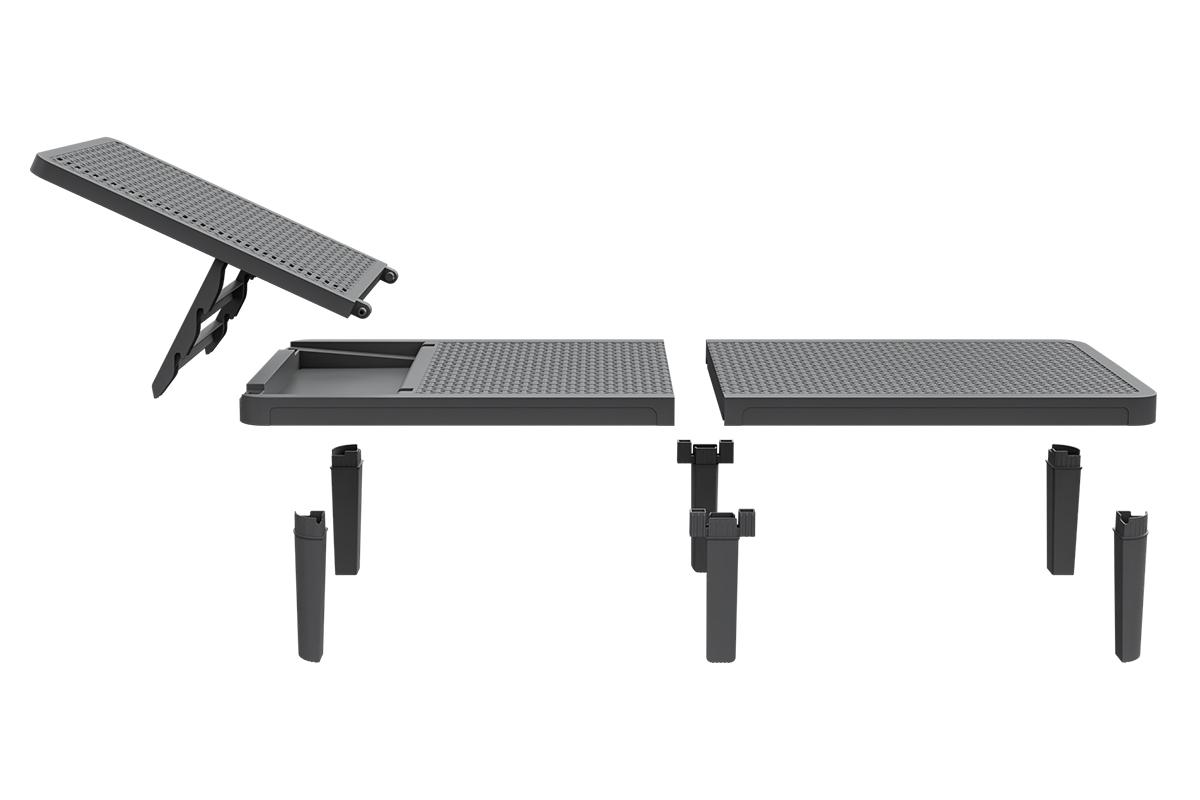 Шезлонг складной TWEET compact – функциональный компактный садовый лежак с поверхностью, напоминающей фактуру плетеного ротанга.