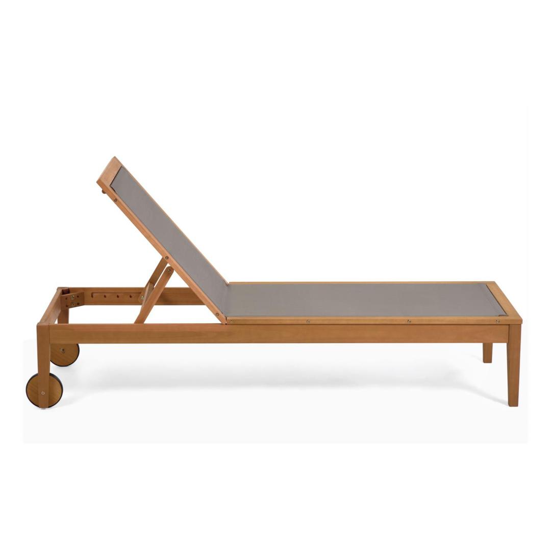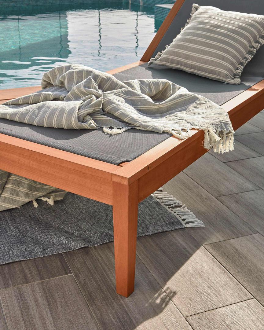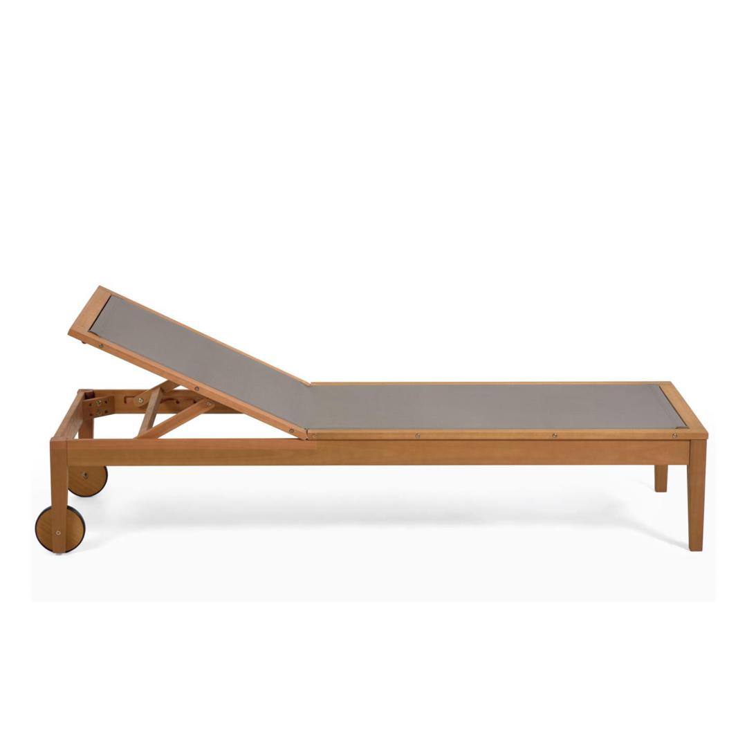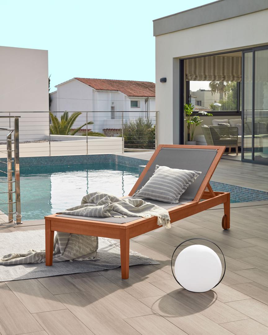 Шезлонг Caterin из эвкалипта от фабрики La Forma (ex Julia Grup) – позвольте себе красивый отдых у бассейна. Шезлонг Caterin сочетает в себе два важных свойства – это уникальную красоту эвкалипта и практичность верхнего покрытия. Такое изделие не смутят прямые солнечные лучи и брызги из бассейна. Поэтому наслаждайтесь уикендом возле дома в полном комфорте, в любом положении тела. Шезлонг полностью выполнен из массива эвкалипта. Древесина покрыта лаком цвета тикового дерева, который защищает ее от негативного воздействия влаги и солнца. Конструкция включает задние колеса диаметром 15 см, которые окантованы пластичными шинами для защиты древесины от деформации и улучшения динамики. Благодаря им, вы сможете легко перекатывать шезлонг, почти не прилагая физических усилий. Передние ножки сделаны в виде квадратных брусков с шириной грани 5 см. Спинка регулируется по высоте. Верхнее покрытие представляет собой синтетическую плотную сетку темно-зеленого или молочного цвета (зависит от выбранной модели). Она не портится от влаги, не теряет цвет от воздействия солнечных лучей, простая в уходе. Допустимая весовая нагрузка на шезлонг – 130 кг. Размеры: ширина – 70 см, высота – от 70 до 94 см (зависит от положения спинки), глубина – 200 см, глубина сиденья – 120 см. Вес изделия – 14 кг. Потребуется самостоятельная сборка. Инструкция и крепеж включены в комплектацию.