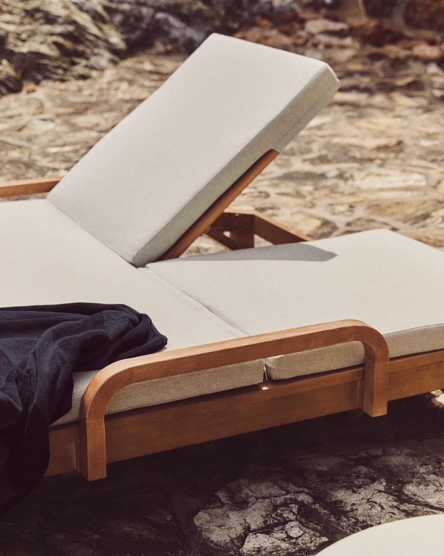 Индивидуальный комфорт становится реальностью благодаря шезлонгу Sonsaura, изготовленному из массива эвкалипта. Он адаптируется к любому моменту благодаря регулируемой спинке в 4 положениях, на 100% подходит для использования на открытом воздухе и имеет колеса для легкой транспортировки.