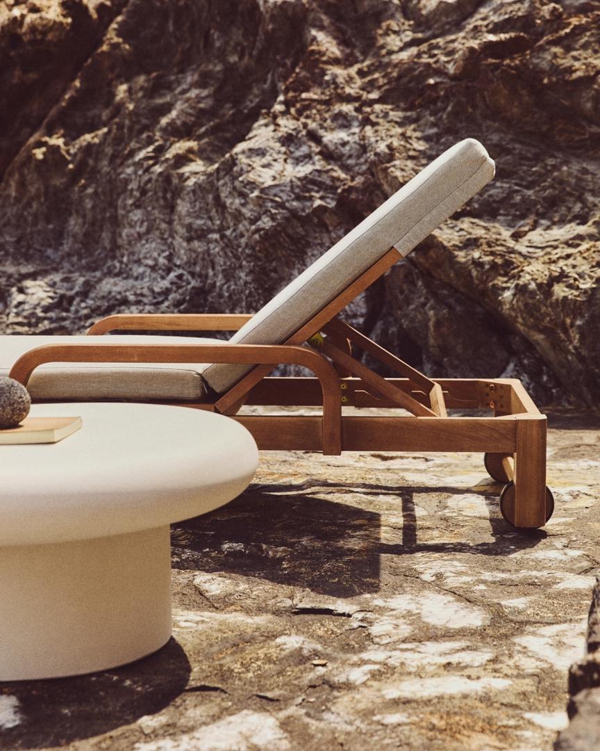Индивидуальный комфорт становится реальностью благодаря шезлонгу Sonsaura, изготовленному из массива эвкалипта. Он адаптируется к любому моменту благодаря регулируемой спинке в 4 положениях, на 100% подходит для использования на открытом воздухе и имеет колеса для легкой транспортировки.