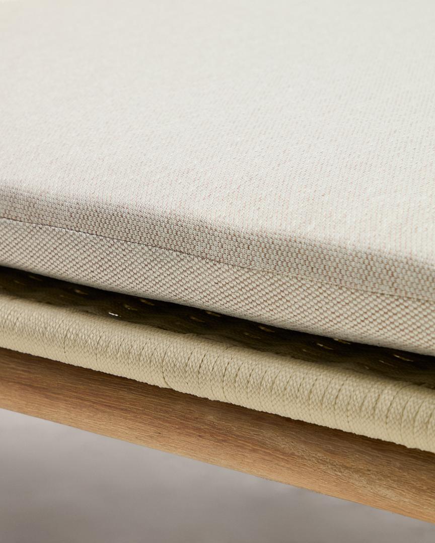 Шезлонг Alipa создан для наслаждения отдыхом в гармонии и спокойствии. Его прочная конструкция из акации отличается уникальными прожилками и нюансами, отражающими неповторимость каждого изделия. Сиденье, сплетенное вручную из устойчивого к УФ-излучению веревочного шнура, обеспечивает комфорт и упругость, сохраняя свой внешний вид на протяжении долгого времени. В комплект входят съемные подушки для легкой чистки и ежедневного ухода. Мы рекомендуем хранить шезлонги в дождливые дни, чтобы продлить срок их службы. Для сохранения древесины в наилучшем состоянии мы рекомендуем ежегодно обрабатывать ее защитным средством Sterina. Древесина на 100% сертифицирована FSC™ и получена из ответственно управляемых лесов.