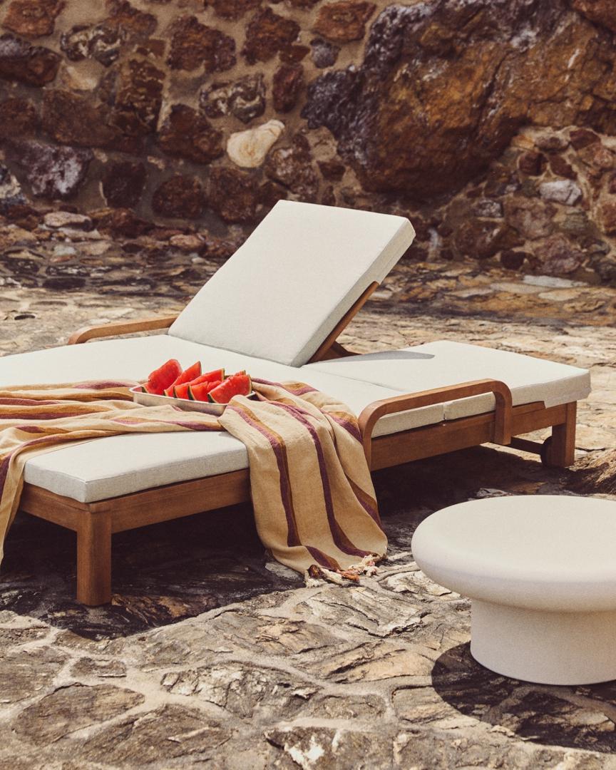 Индивидуальный комфорт становится реальностью благодаря шезлонгу Sonsaura, изготовленному из массива эвкалипта. Он адаптируется к любому моменту благодаря регулируемой спинке в 4 положениях, на 100% подходит для использования на открытом воздухе и имеет колеса для легкой транспортировки.
