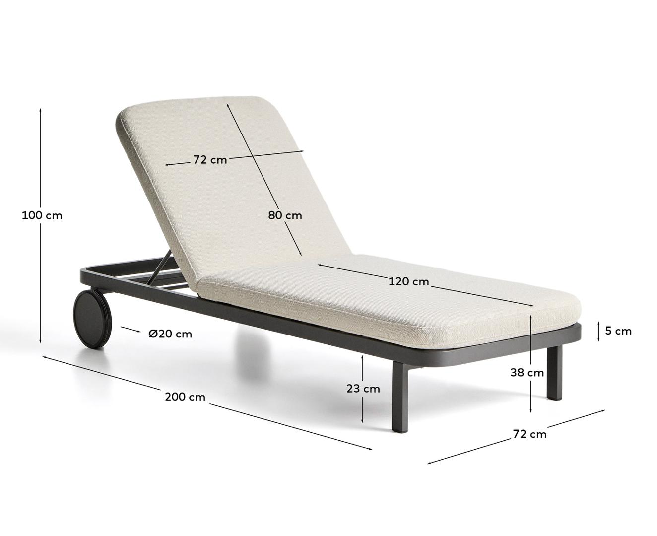 Шезлонг Kionia имеет прочную, но легкую алюминиевую конструкцию, разработанную для удобной транспортировки и использования на открытом воздухе. Подушки со съемными чехлами обеспечивают комфорт и практичность. Мы рекомендуем убирать их на хранение в дождливые дни, чтобы сохранить ткань в хорошем состоянии. Спинка имеет четыре положения, позволяющие отрегулировать положение для более комфортного отдыха. Колесики на основании облегчают перемещение и позволяют адаптировать шезлонг к месту установки в зависимости от потребностей пространства.