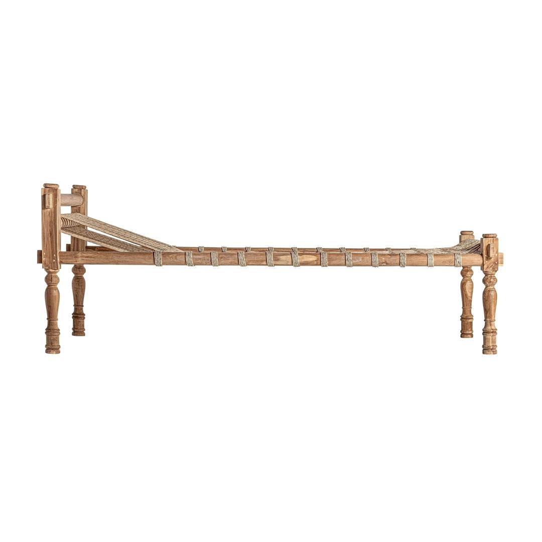 Расслабьтесь стильно. Шезлонг BELLEY, изготовленный из тикового дерева в сочетании с коричневой веревкой, создаёт атмосферу бохо. Он идеально подходит для террас, веранд и интерьеров, где царит спокойствие. Ширина: 200 см, Глубина: 70 см, Высота: 75 см