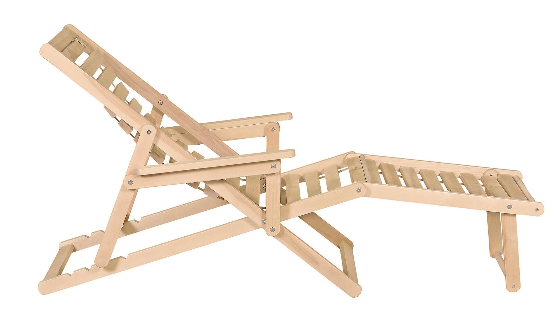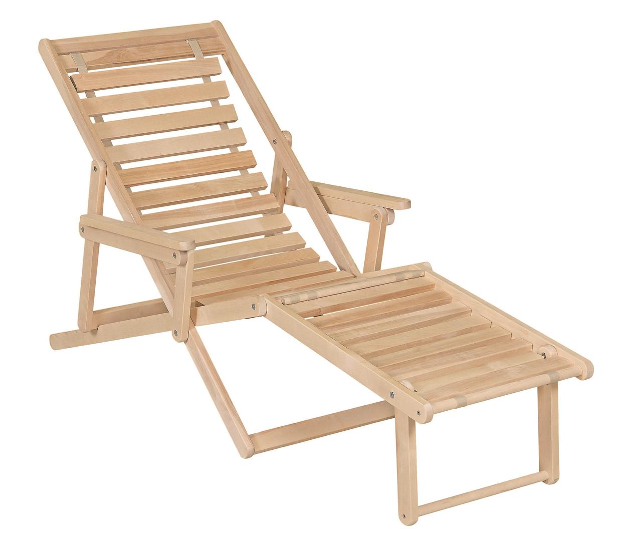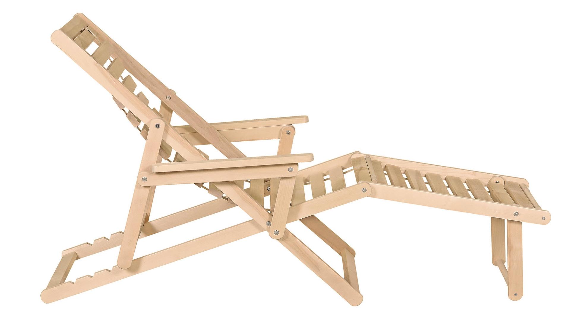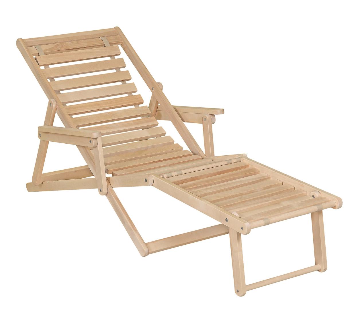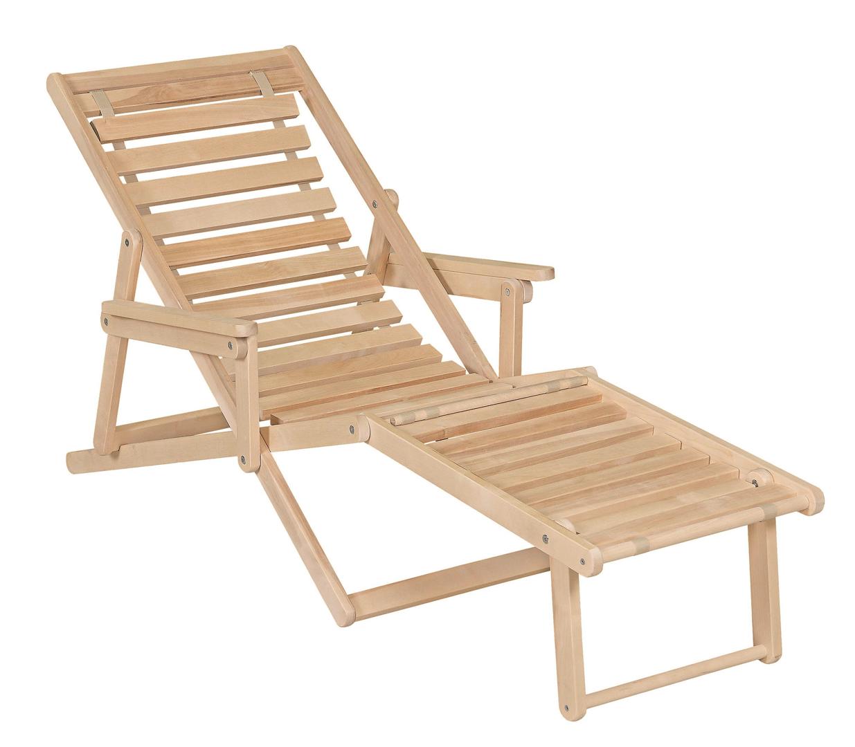 Шезлонг с подлокотниками и подножьем для отдыха на даче, в загородном доме, на террасе, балконе. Легко складывается, не занимает много места. Сиденье из ламелей шириной 45 мм, прочно связанных между собой, принимает форму сидящего. Есть возможность фиксировать наклон спинки в четырёх положениях и подножья в 2 положениях- всего 8 вариантов. Эта модель отлично гармонирует с газоном, бассейном и тёплым солнцем, образуя гармоничное место отдыха. Каркас шезлонга не тонирован, выполнен из шлифованной берёзы первого сорта.