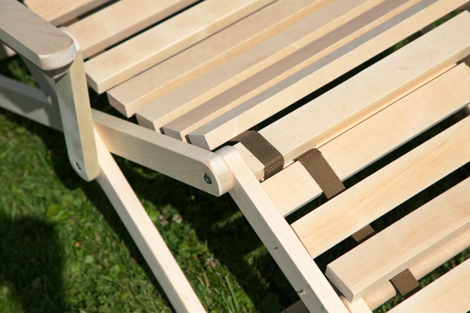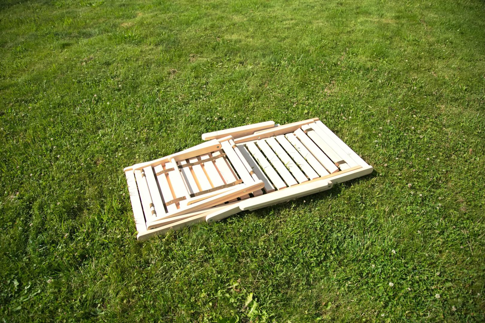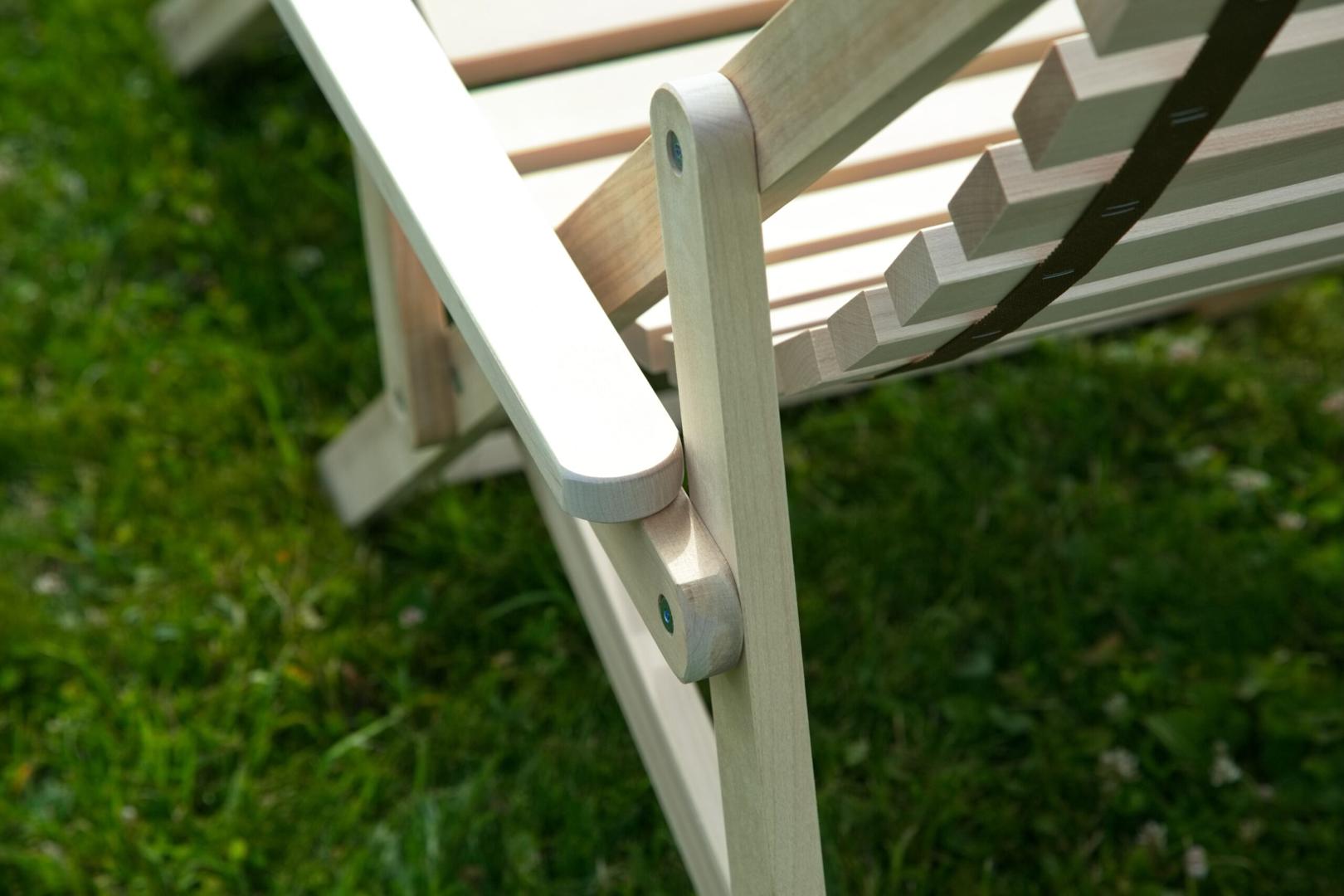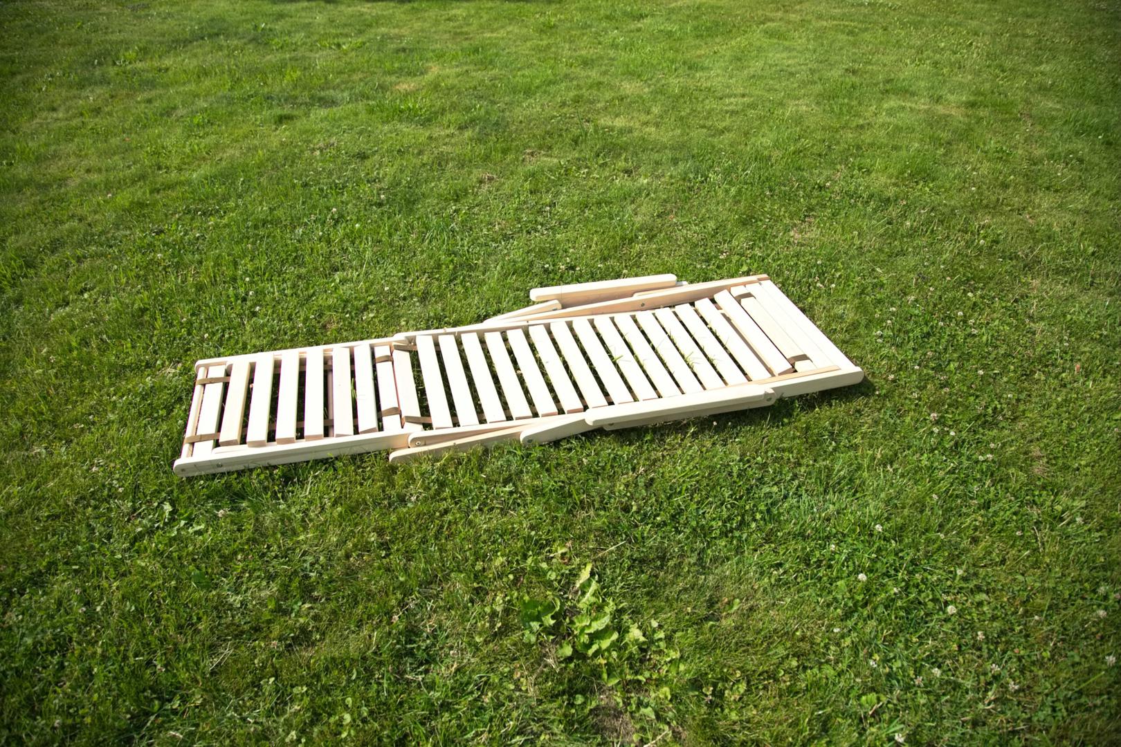 Шезлонг с подлокотниками и подножьем для отдыха на даче, в загородном доме, на террасе, балконе. Легко складывается, не занимает много места. Сиденье из ламелей шириной 45 мм, прочно связанных между собой, принимает форму сидящего. Есть возможность фиксировать наклон спинки в четырёх положениях и подножья в 2 положениях- всего 8 вариантов. Эта модель отлично гармонирует с газоном, бассейном и тёплым солнцем, образуя гармоничное место отдыха. Каркас шезлонга не тонирован, выполнен из шлифованной берёзы первого сорта.