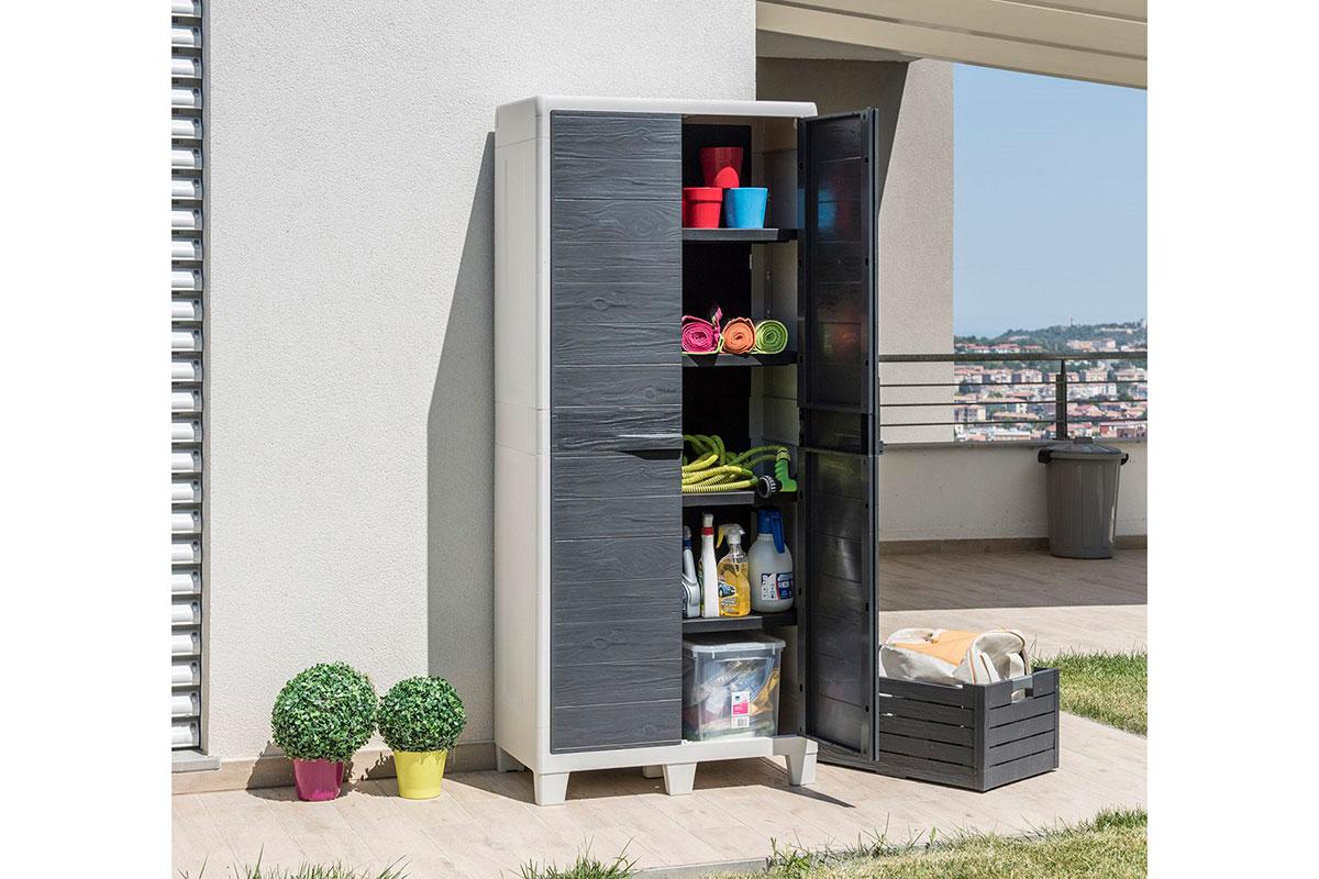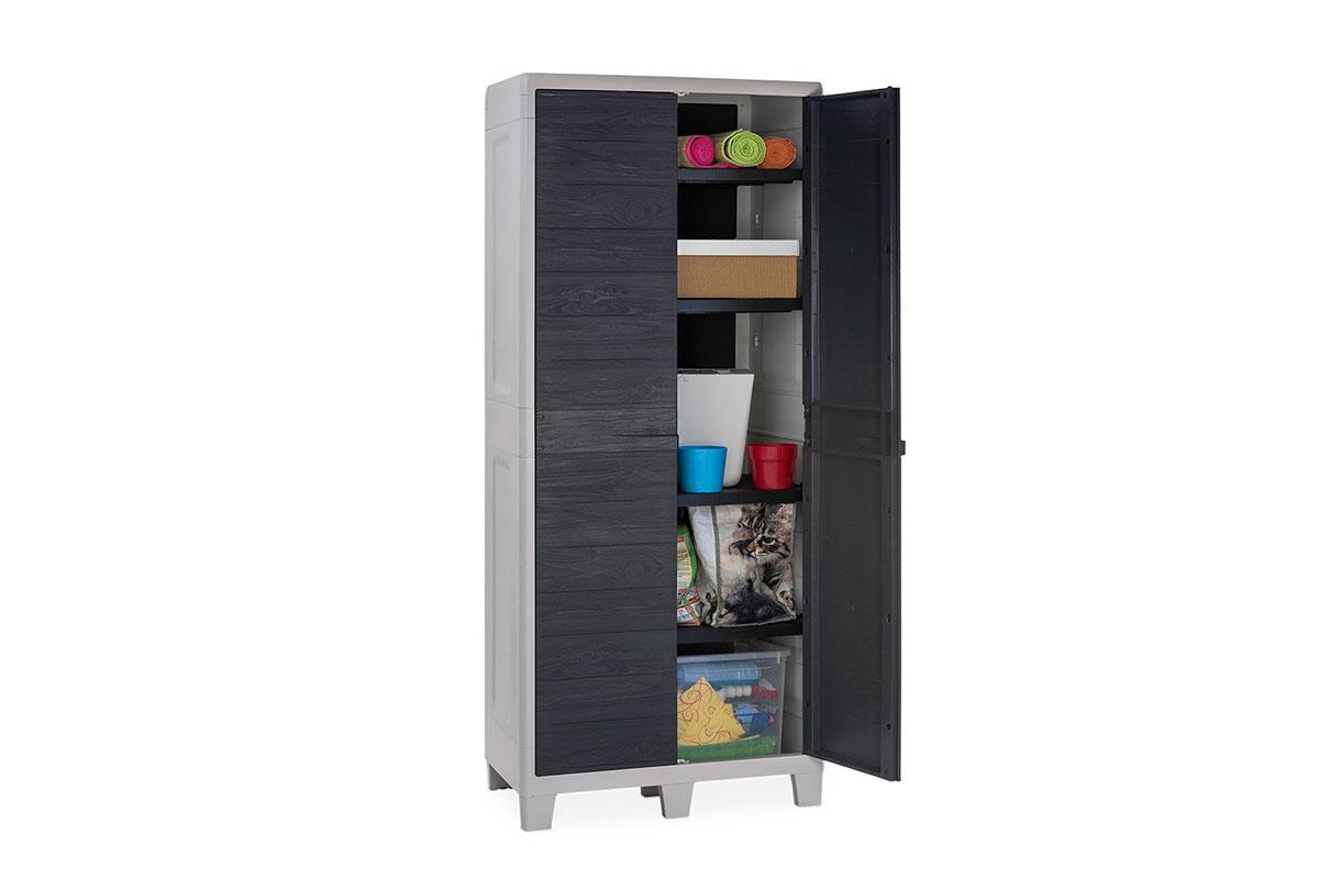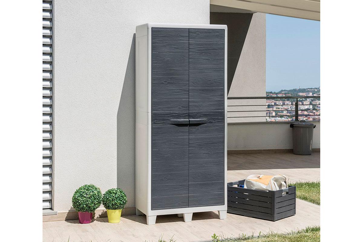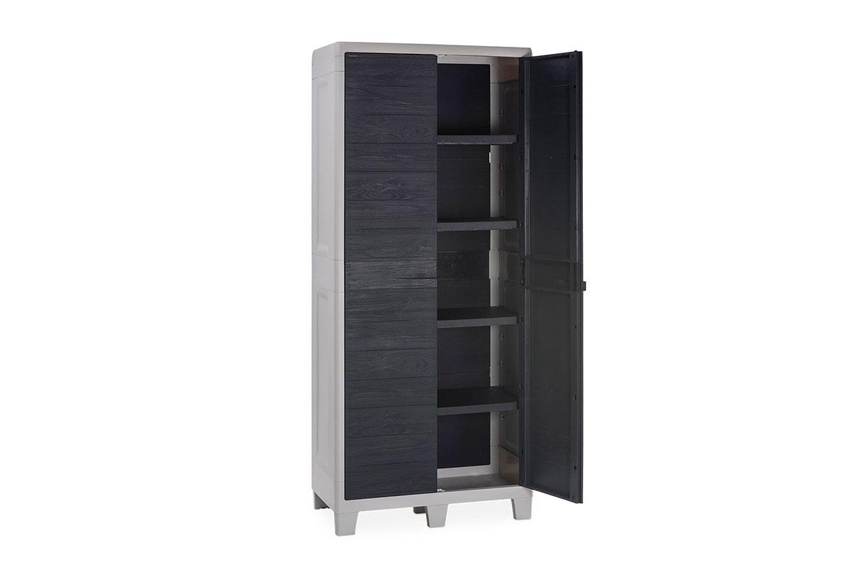 Высокий садовый двустворчатый пластиковый шкаф Toomax Woody's XL 077 с регулируемыми полками.