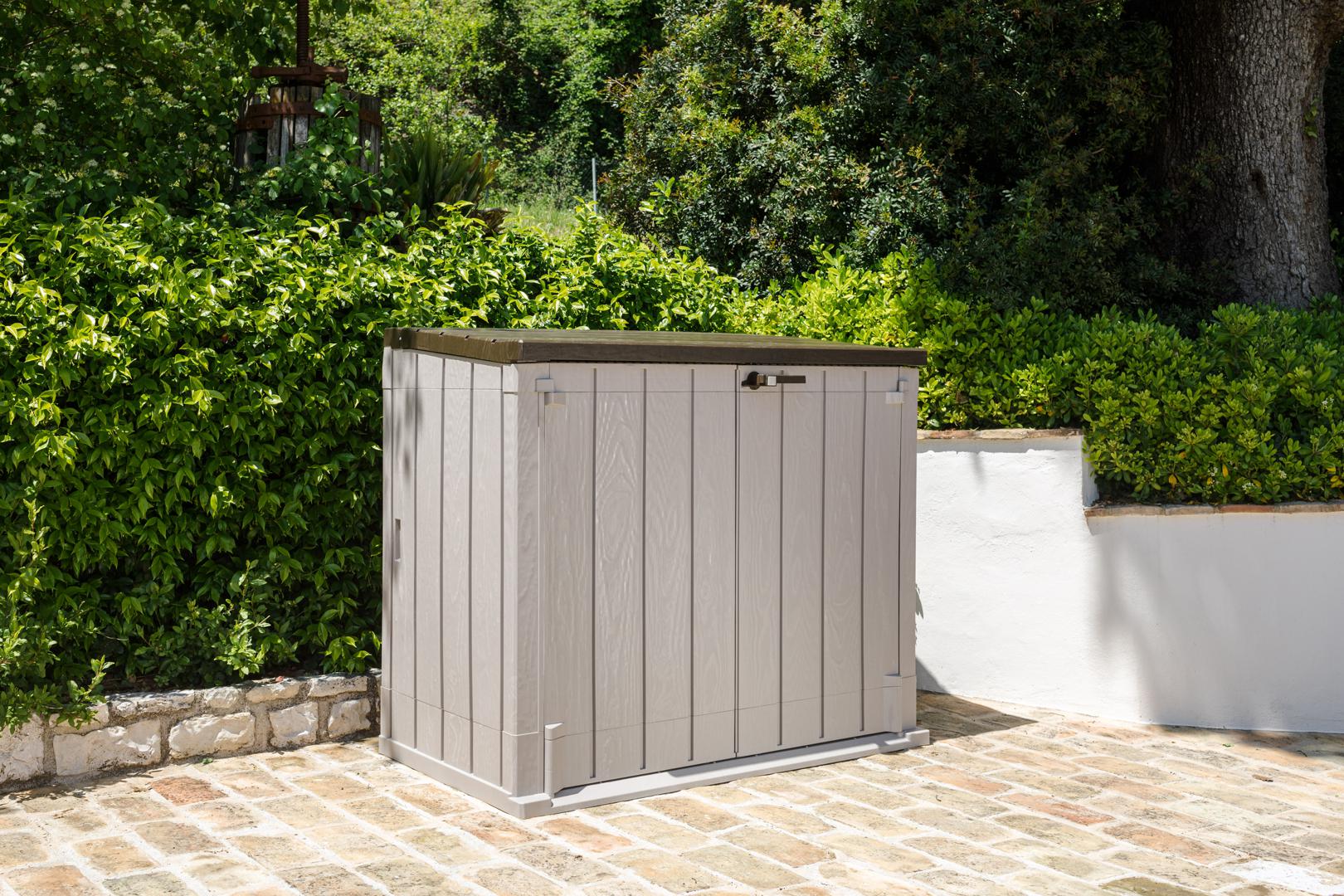 Бюджетная модель большого шкафа для уличного хранения в саду или на заднем дворе.
