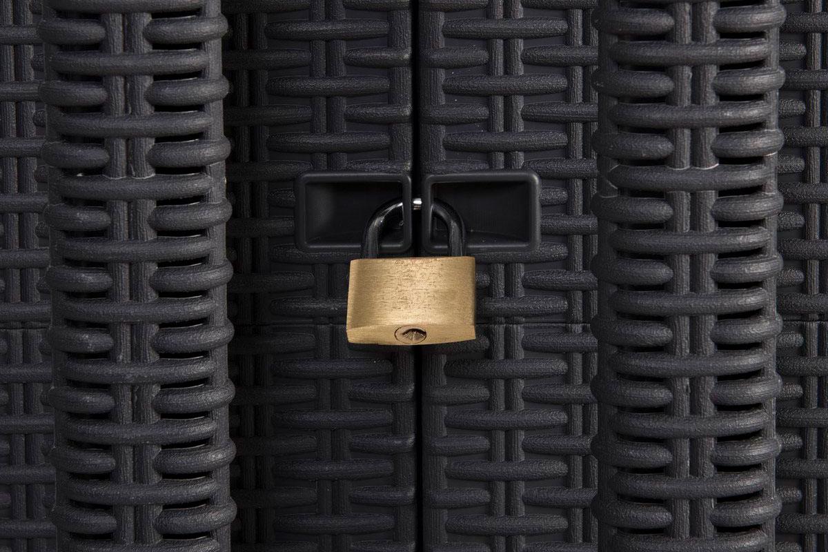 Двойная дверь обеспечивает легкий доступ и защиту находящихся внутри предметов. В комплекте 3 внутренние ЭКСТРА-ПРОЧНЫЕ пластиковые полки , каждая из которых выдерживает вес до 30 кг, гнездо для замка D=5мм (не входит в комплект) и монтажные отверстия в задней стенке, которые позволяют привинтить шкаф к стене для большей безопасности в случае сильного ветра.
