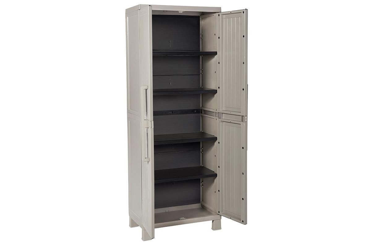 Модель - Уличный шкаф TOOMAX 2х дверный глубокий WOOD MIDI (4 полки), тёпло-серый