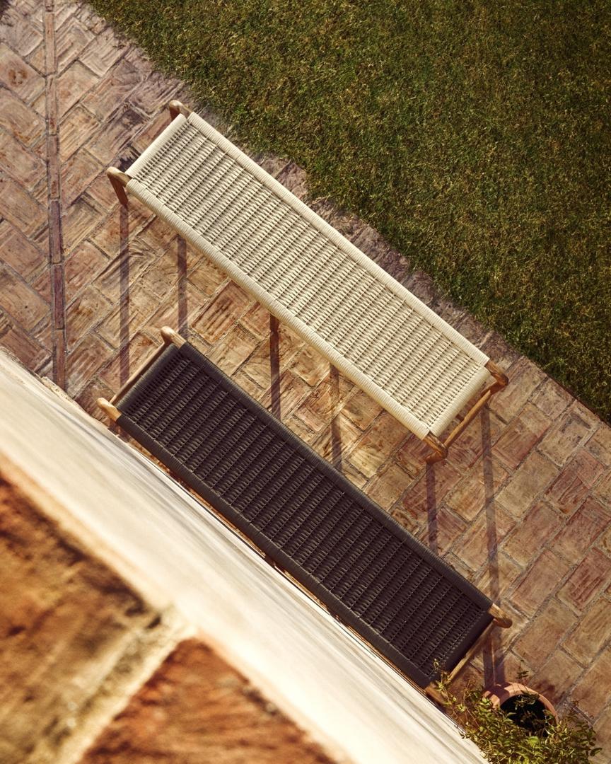 Скамья La Forma (ех Julia Grup) Скамейка Alipa из массива акации и веревки темно-серого цвета арт. 481353