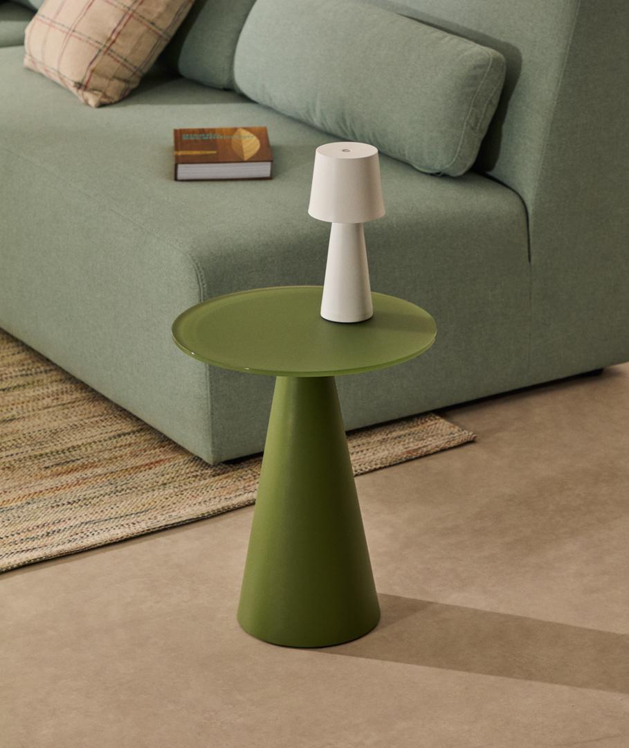 Столик La Forma (ех Julia Grup) Приставной столик Wilshire из стали с закаленным стеклом с матовой зеленой отделкой Ø35 см арт. 299296