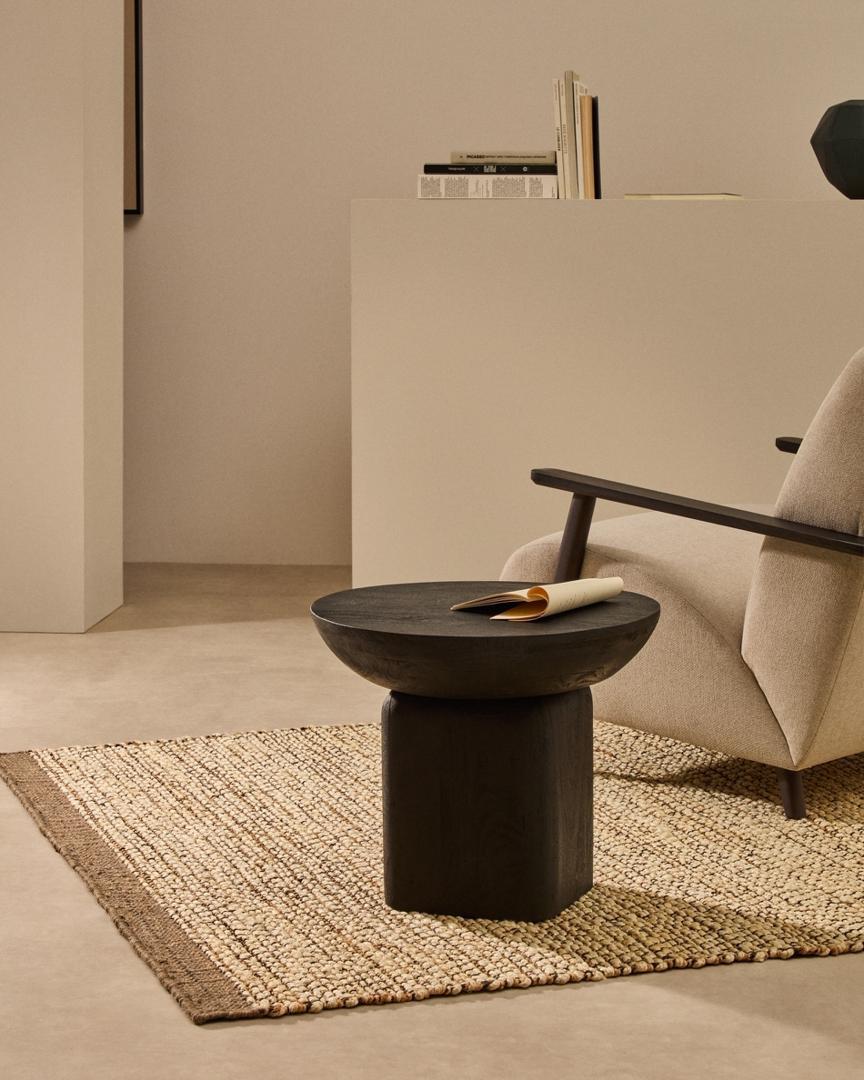 Столик La Forma (ех Julia Grup) Ovak Приставной столик из акации с чёрной отделкой Ø50 см арт. 299304