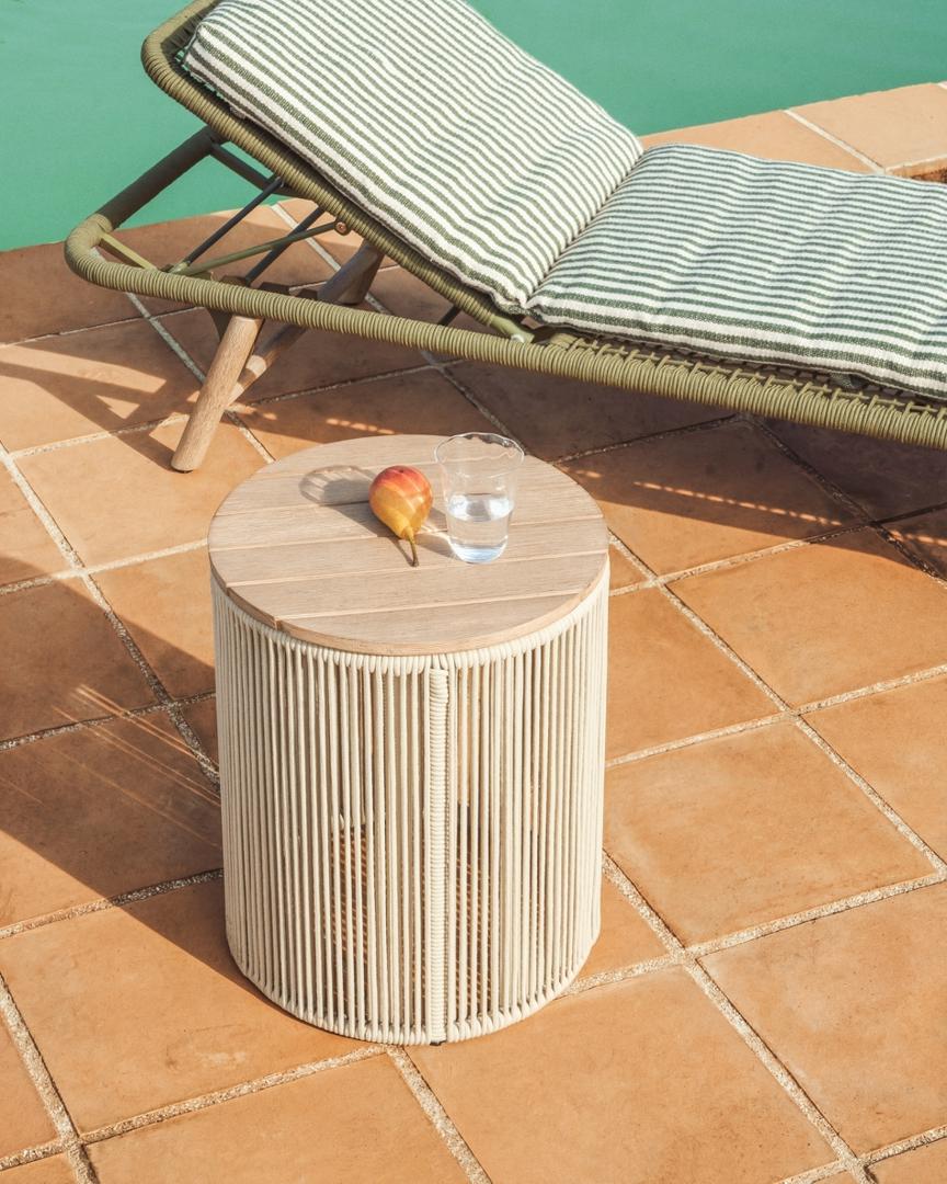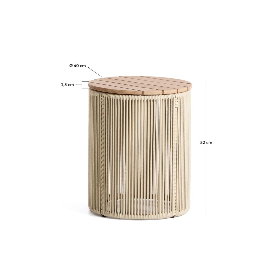 Столик La Forma (ех Julia Grup) Уличчный столик Dandara из стали, веревки цвета экрю и массива акации Ø40 см арт. 482552