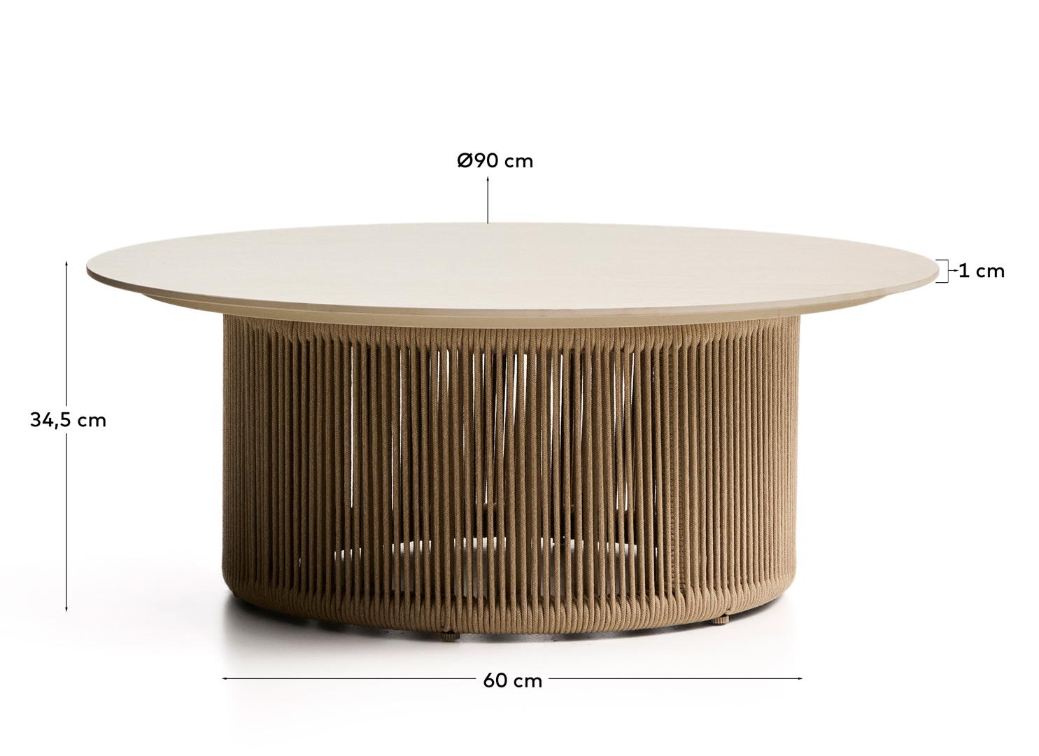 Столик La Forma (ех Julia Grup) Уличный столик Orosei из спеченного камня, алюминия цвета экрю и бежевой веревки, 90 см арт. 482900