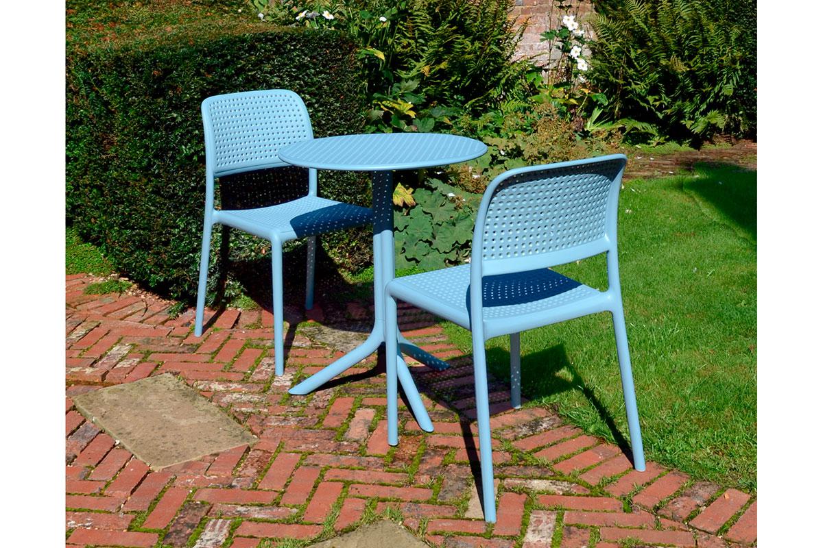 Стулья и столы светлых оттенков не нагреваются на солнце и подходят практически к любому экстерьеру.
