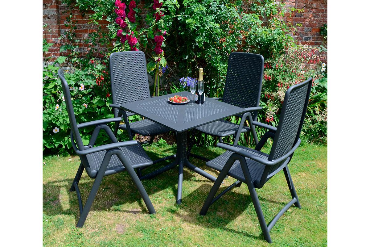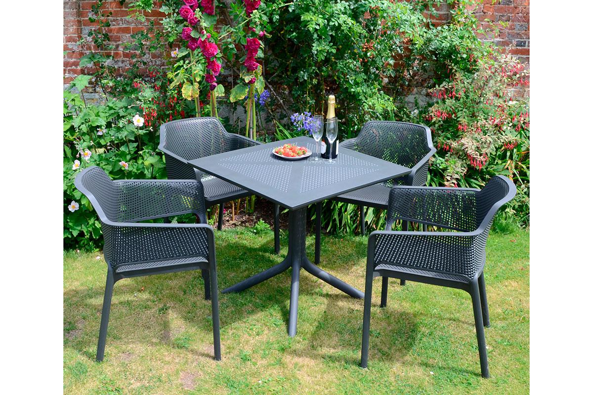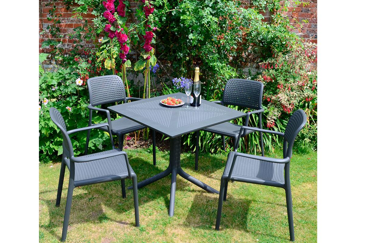 Для получения идеальной комплектации рекомендуем вам купить квадратный пластиковый стол Clip 80 от Nardi со стульями Bora и Bora Bistrot или креслами Acquamarina и Darsena из серии LEKKO от итальянских дизайнеров.