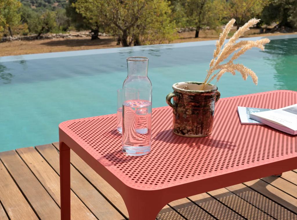 Очень низкий коэффициент теплопроводности материала позволяет продукции долго оставаться на солнце без поглощения тепла. Для того чтобы восстановить прежнее состояние мебели после использования на открытом воздухе, достаточно протереть ее губкой с водой и нейтральным средством, не используя абразивные чистящие средства, растворители и хлорсодержащие вещества. Материал пластиковой мебели Nardi экологически чистый.