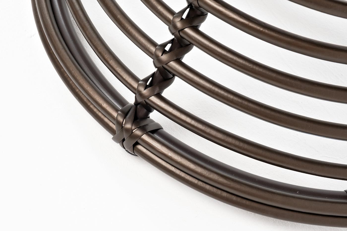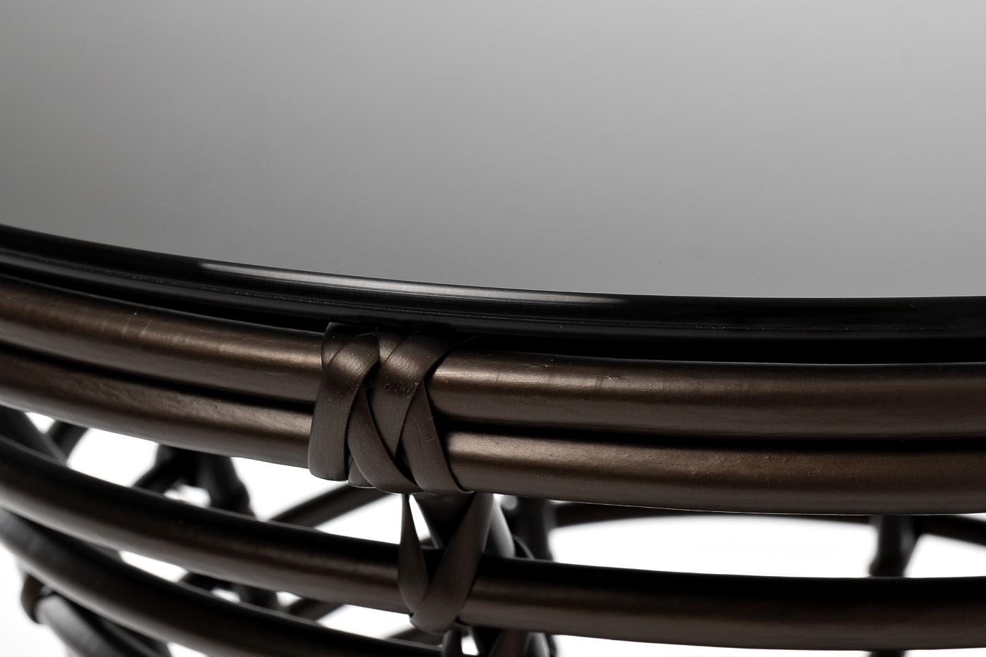 Круглый кофейный столик «Парма» используется как в комплекте, так и в качестве отдельного предмета для сада, открытой террасы или балкона. Каркас столика изготовлен из алюминия, вручную оплетенного круглым искусственным ротангом. Столешница из закаленного стекла толщиной 5 мм. Благодаря износостойким материалам, стол пригоден для использования на улице при любой погоде и не требует специальных условий хранения. Плетеный столик представлен в бронзовом цвете.