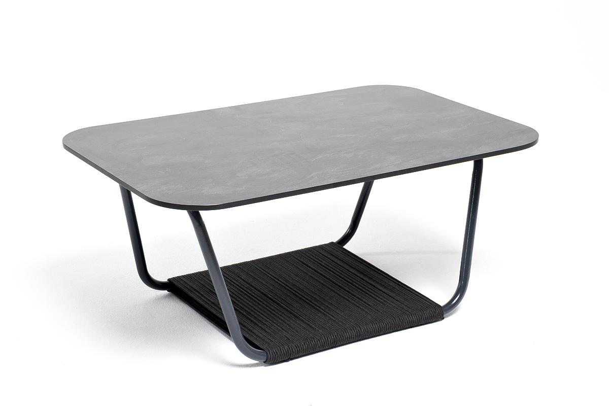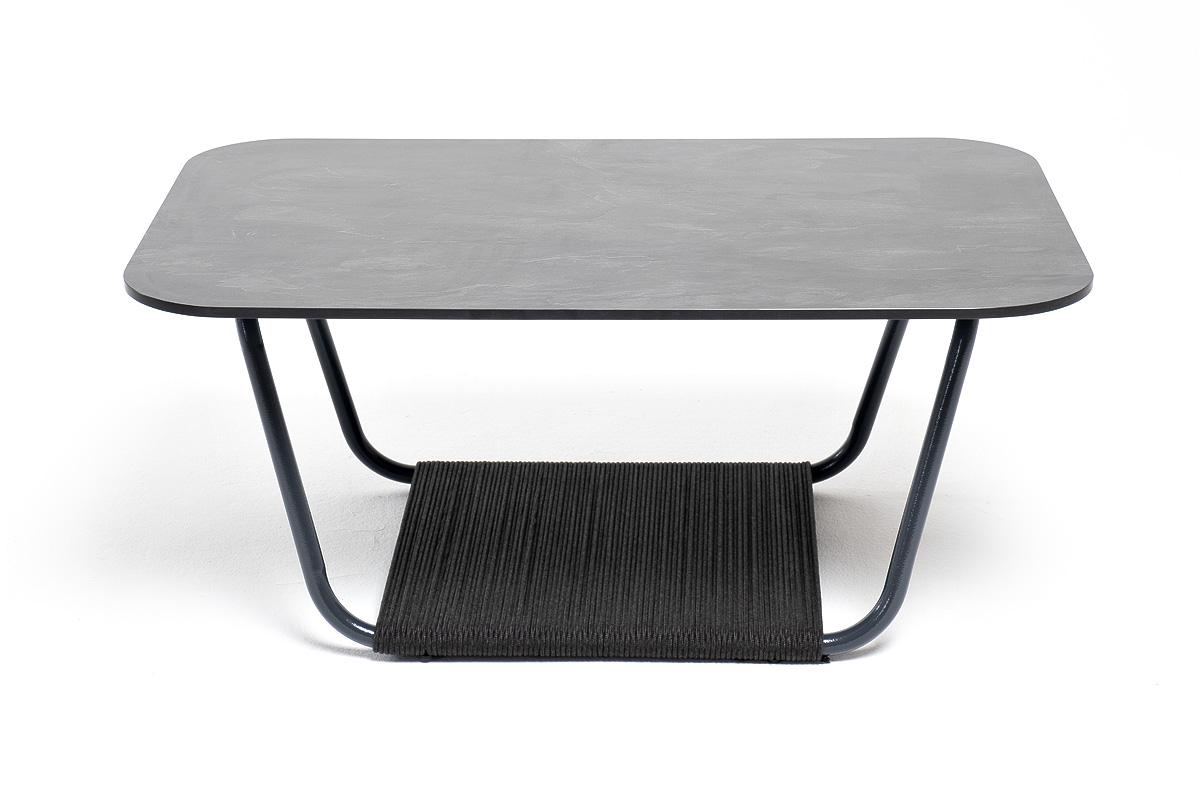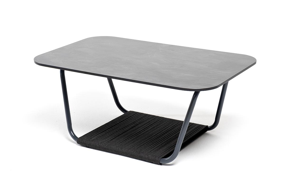 Стол журнальный 4SIS "Гранада" журнальный стол 90х60см из HPL, цвет "серый гранит", каркас темно-серый (RAL7024) муар, роуп темно-серый круглый арт. GRAY-90-60-Al-GRA(RAL7024MUA)-4sis D-grey