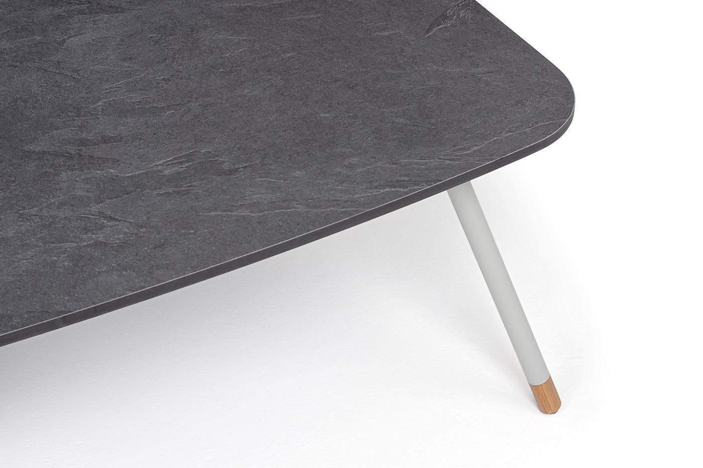 Журнальный стол «Верона» представляет собой идеальное решение для организации зоны отдыха в гостиной или на летней веранде. Благодаря своему стильному дизайну и высококачественным материалам, он будет служить долгое время и при этом сохраниет свою первозданную красоту. Каркас столика изготовлен из алюминия, окрашенного в светло-серый цвет. Алюминий является легким и прочным материалом, что обеспечивает долговечность и надежность изделия. На ножках столика идут дубовые наконечники (заглушки).