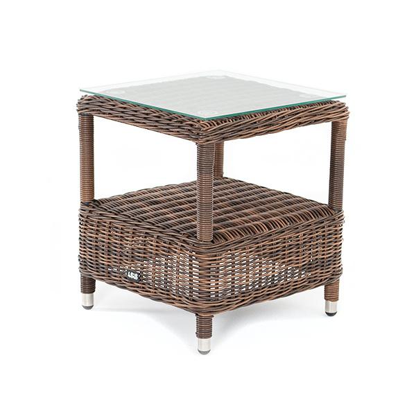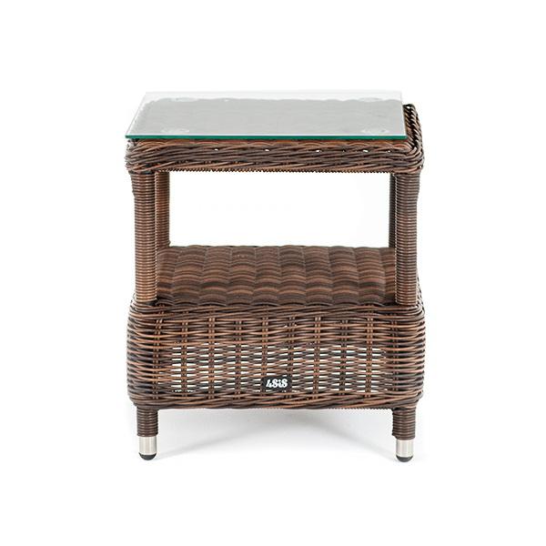 Кофейный стол из искусственного ротанга «Форио» отличается компактными размерами, ширина и глубина всего 450 мм, а высота 520 мм, что позволяет эксплуатировать его в ограниченном пространстве. Модель состоит из каркаса, обвитого вручную ротангом коричневого цвета. Данный образец обладает ударопрочной стеклянной 5 мм столешницей, конструкцией предусмотрена полочка для принадлежностей.
