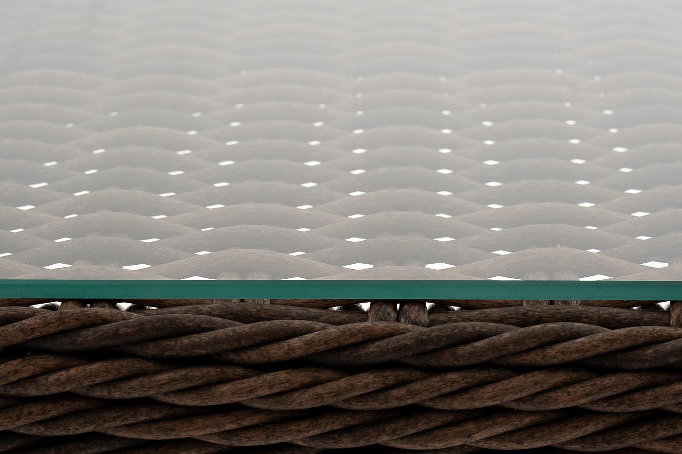 Журнальный столик «Прованс» является удачным дополнением для кресел и диванов из той же линейки мебели. Алюминиевый каркас имеет цвет натурального дерева. Столик дополняет декоративная оплетка, при изготовлении которой используется круглый искусственный ротанг. Она представлена в коричневом цвете. Столешницу из ротангового плетения дополняет прочное стекло, используемое для изготовления мебели. Стекло крепится с помощью держателей на силиконовых присосках и транспортируется в собранном в